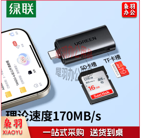 绿联(UGREEN)Type-C3.0高速读卡器 兼容UHS-I/II卡 SD/TF双卡槽 CM802