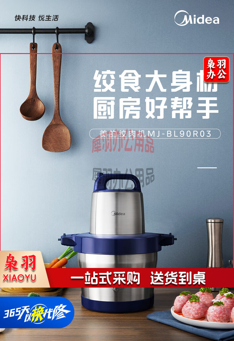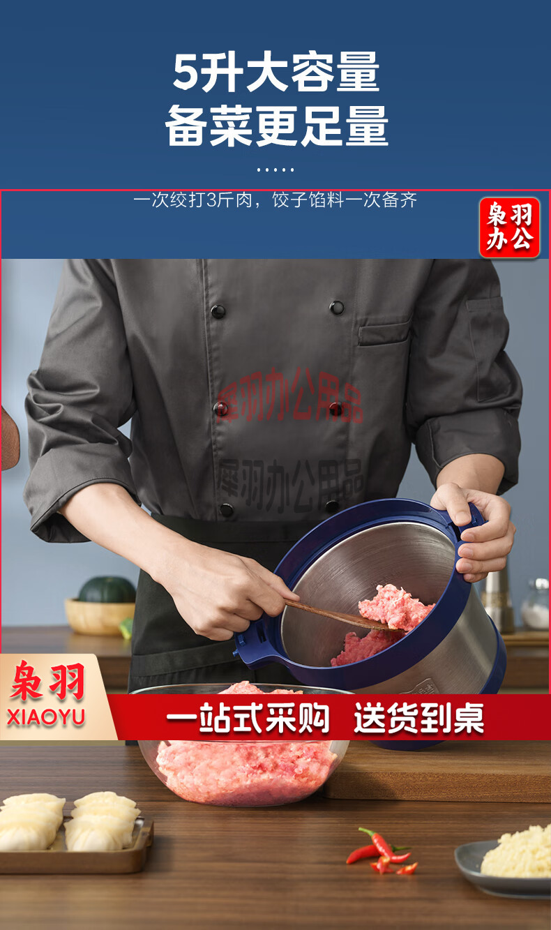 美的(Midea)绞肉机5L家用 不锈钢杯1000W大功率绞馅机电动商用肉馅饺子馅碎肉机多功能绞菜一体料理机 MJ-BL90R03【5升容量丨双刀头】