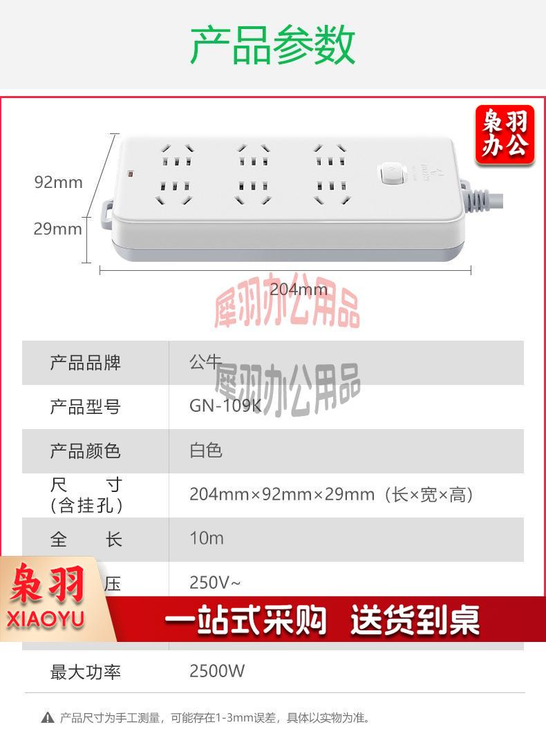 公牛(BULL) 新国标插座/插线板/插排/排插/接线板/拖线板 6位总控全长10米 GN-109K
