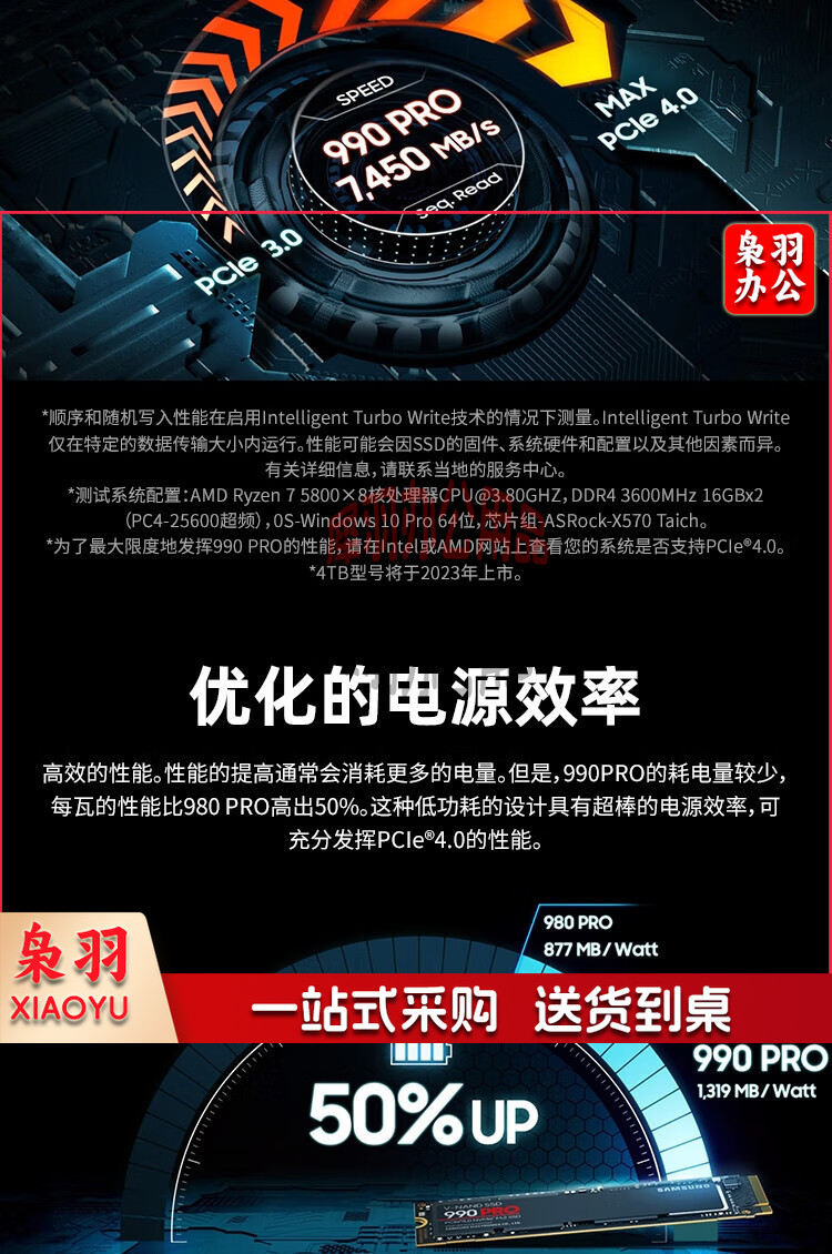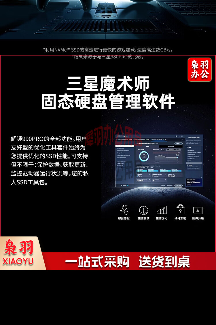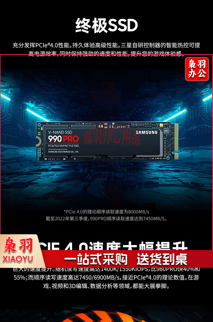 三星 (MZ-VI9P2T0BW) 990PRO 2TB SSD固态硬盘M.2接口(NVMe协议PCIe 4.0) 台式机笔记本 NVMe 三星990PRO 2T
