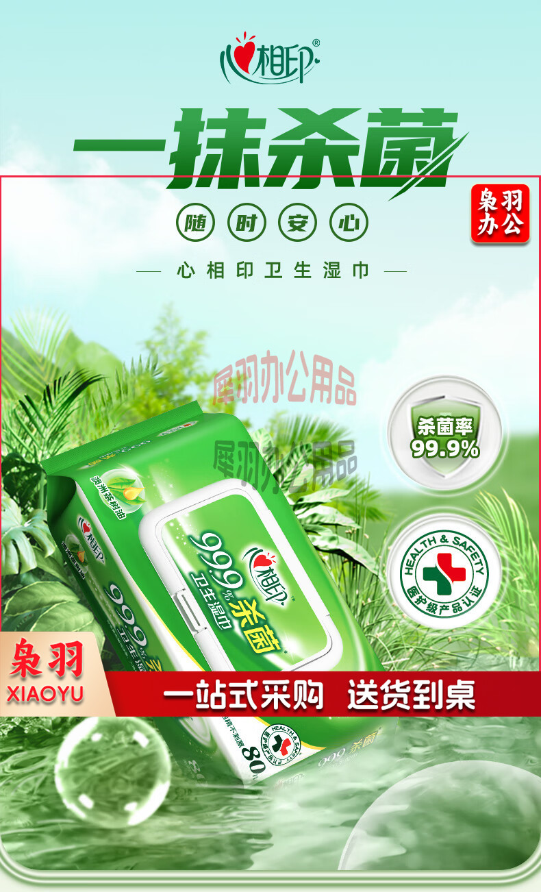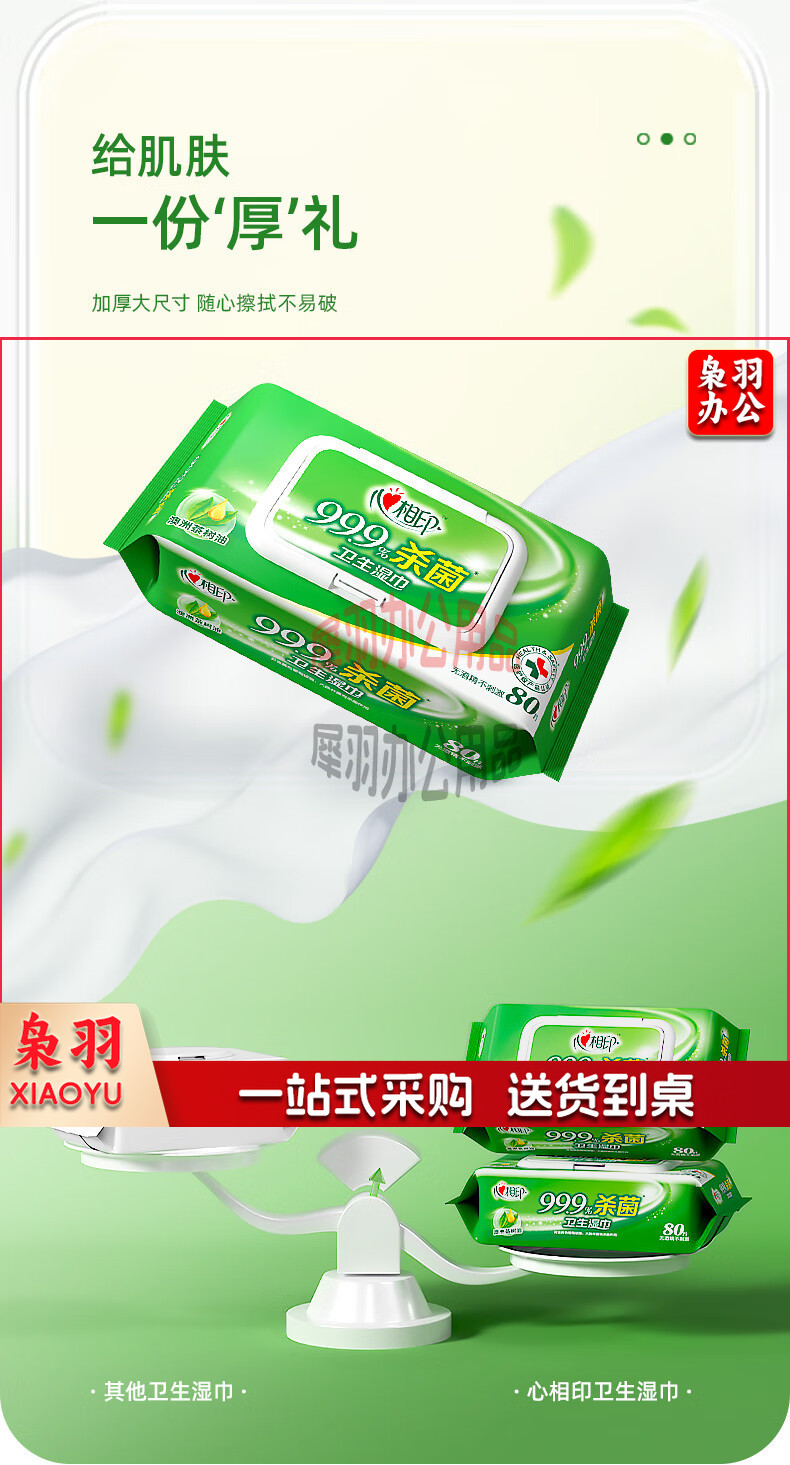 心相印杀菌湿巾80抽*3包 带盖抽取湿纸巾
