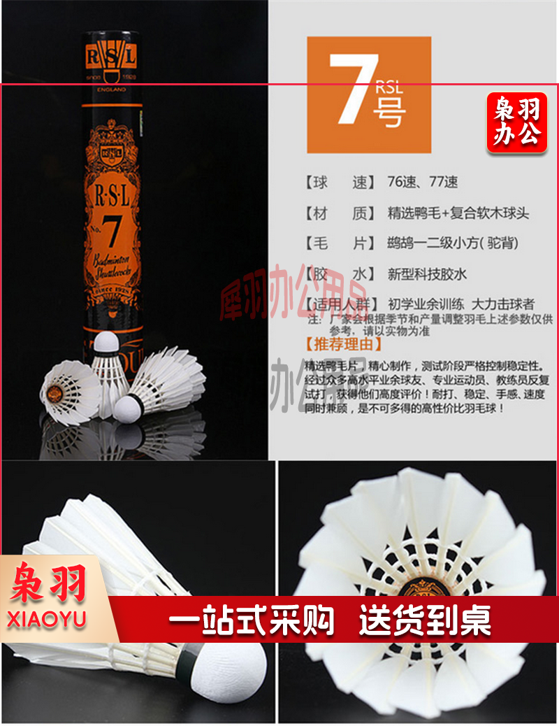 亚狮龙(RSL)RSL7号 训练比赛用球 稳定耐打 羽毛球