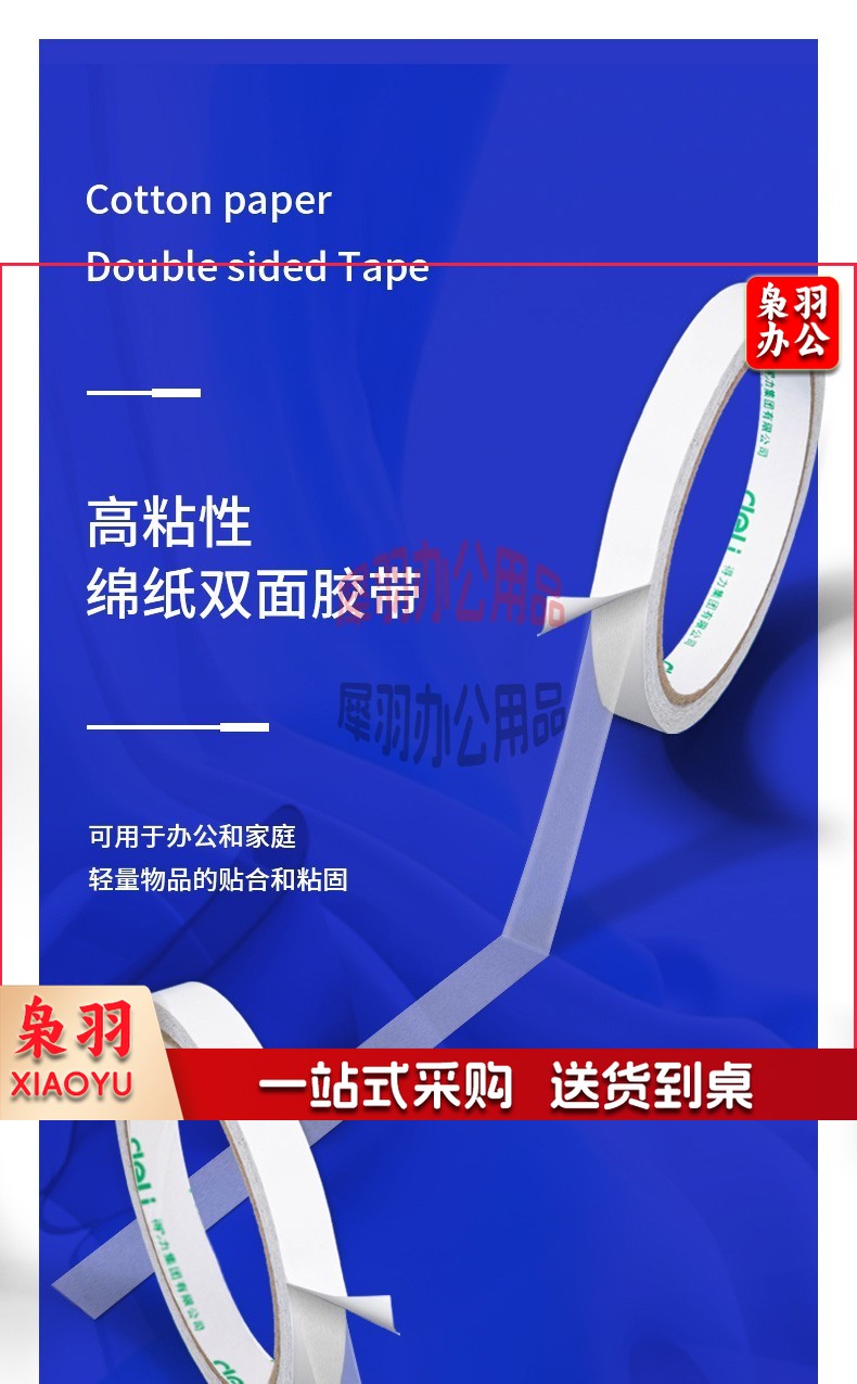 得力(deli)棉纸双面胶带 双面胶 得力文具 单卷装 (9mm*10y)30400