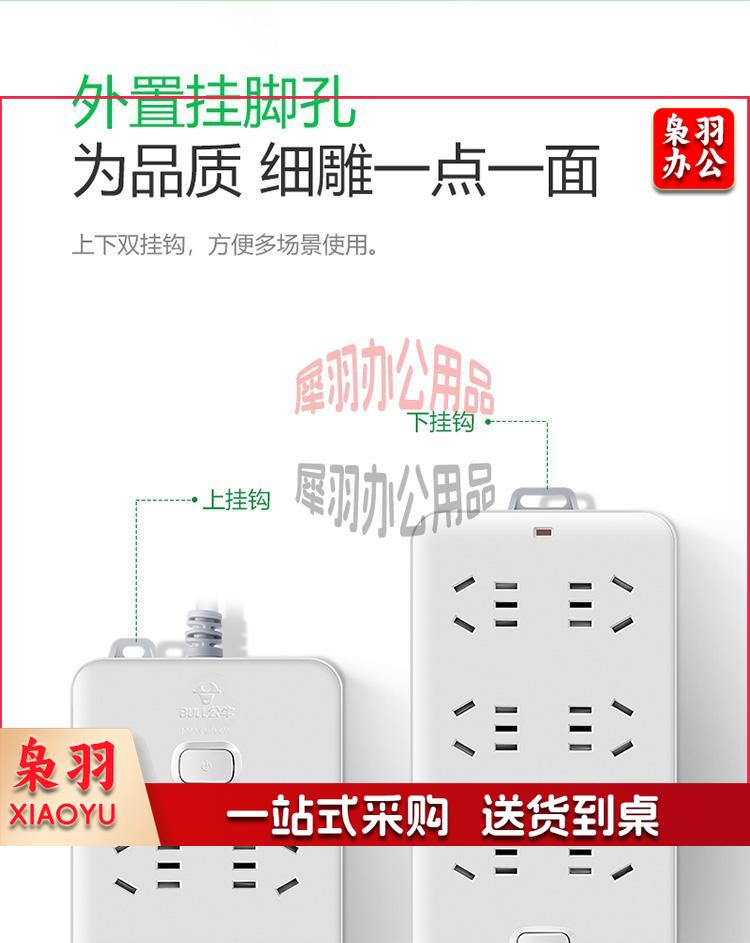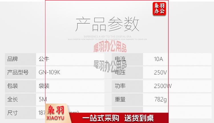 公牛(BULL) 新国标插座/插线板/插排/排插/接线板/拖线板 GN-109K 6位总控全长5米