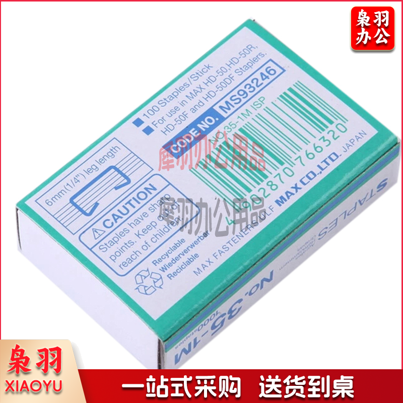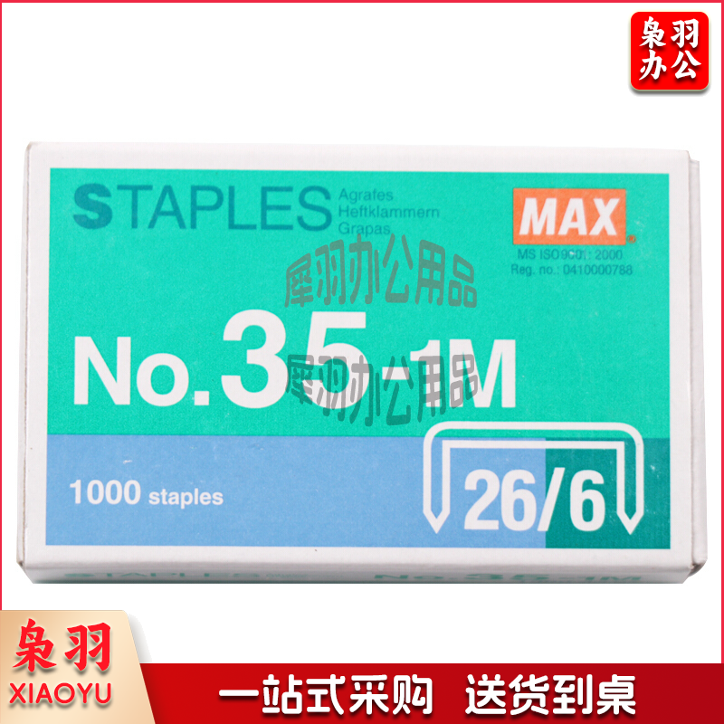 美克司 统一订书针 NO.35-1M 26/6 1000枚/盒 MS93246