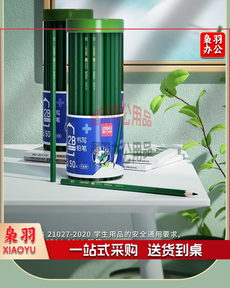 得力(deli)50支2B绿杆铅笔 六角杆学生考试绘图铅笔 书写铅笔 六一儿童节礼物开学礼物33413-2B