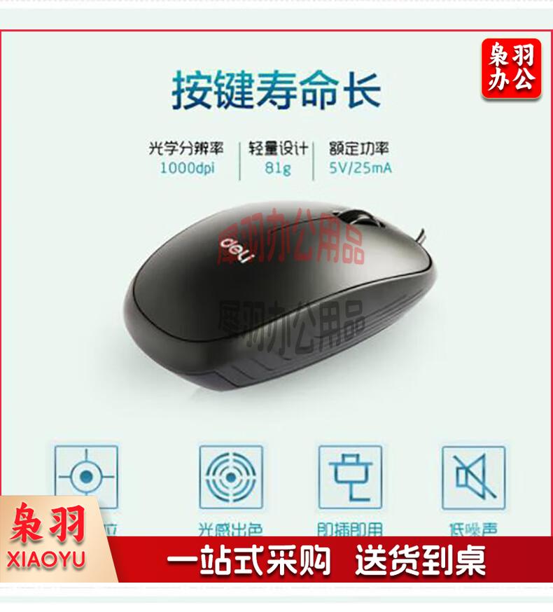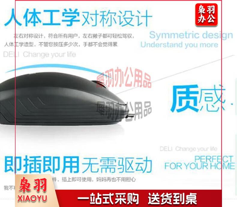 得力(deli) USB有线鼠标 光感灵敏办公鼠标 即插即用 经典雅黑 1只 3715