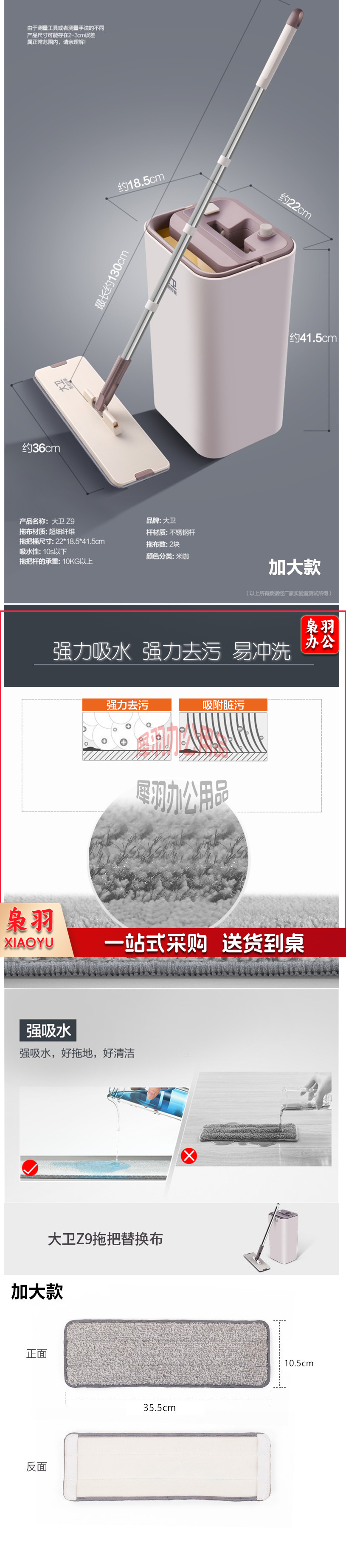 大卫 拖把清洁工具墩布干湿两用加大Z9拖把加大款(共2个布)