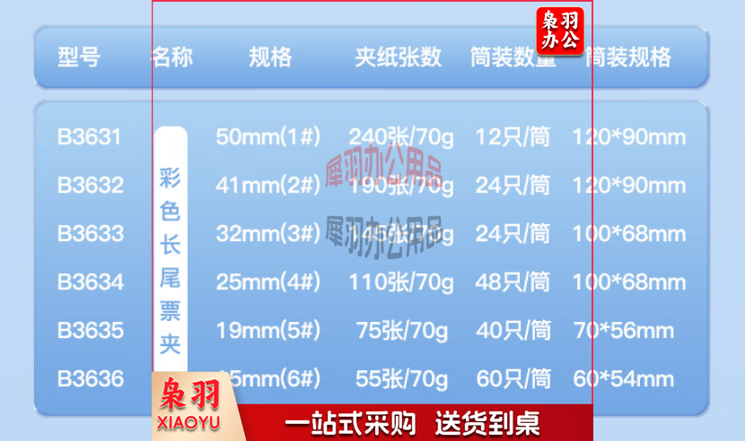 齐心(Comix)长尾夹燕尾夹B3636 彩色金属 6#15mm 60只/筒