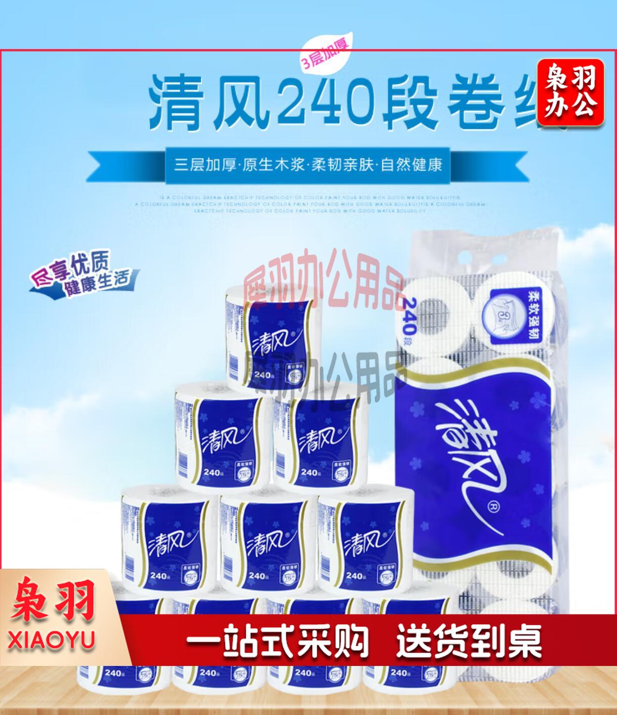清风卷筒纸3层240段10卷有芯纸巾原木浆酒店宾馆用卷纸家用卫生纸手厕纸B22AT3BN