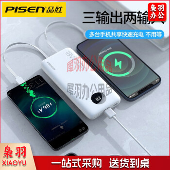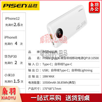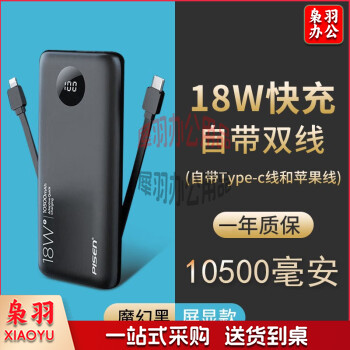 品胜(PISEN) 自带线充电宝PD18W双向快充移动电源小巧便携适用苹果12手机华为type-c 自带线充电宝18W黑色10500mAh