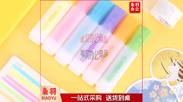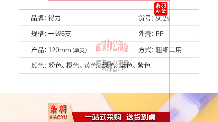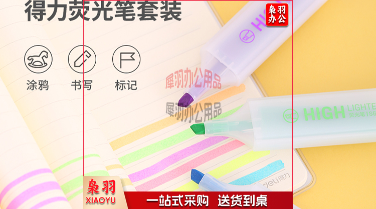得力(deli)S628 6色荧光笔醒目标记笔水性彩色记号笔 6支/袋