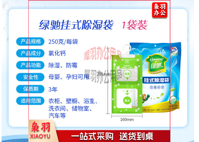 绿驰 可挂式除湿袋250g 1袋装室内除湿剂干燥剂衣柜除湿桶防潮剂抽吸湿盒器防霉吸潮