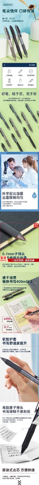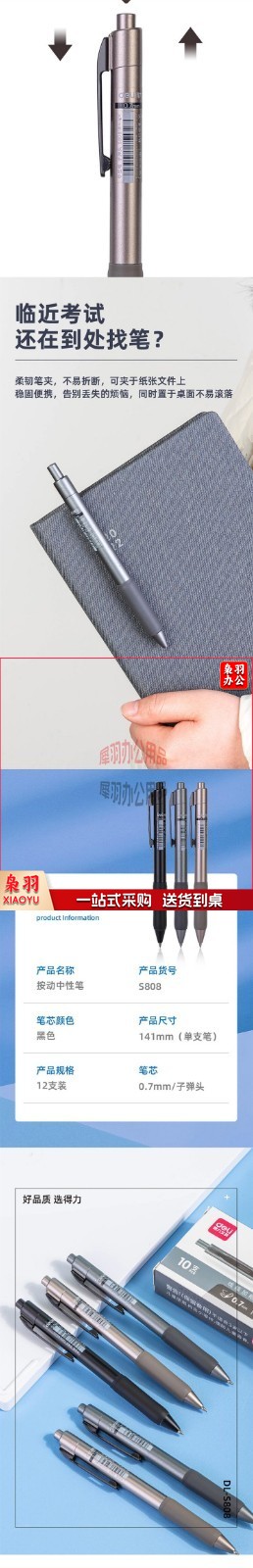 得力S808按动中性笔0.7mm子弹头(黑)(10支/盒)(2盒起送)