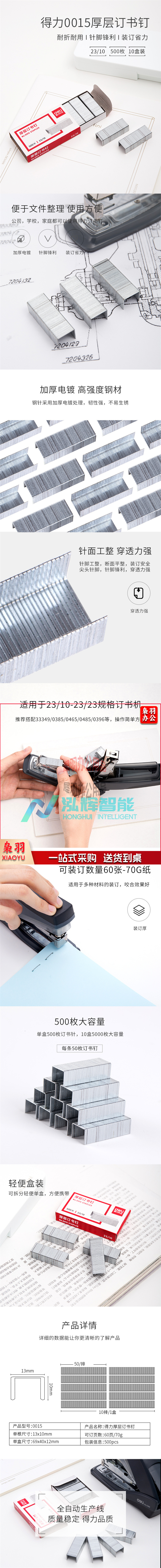 得力 0015 厚层订书钉 23/10 500枚/盒 单位:盒