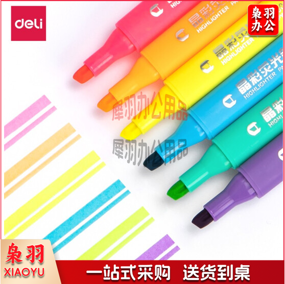 得力 (deli)6色荧光笔考试复习重点标记笔 手帐可用水性记号笔6支/盒33111