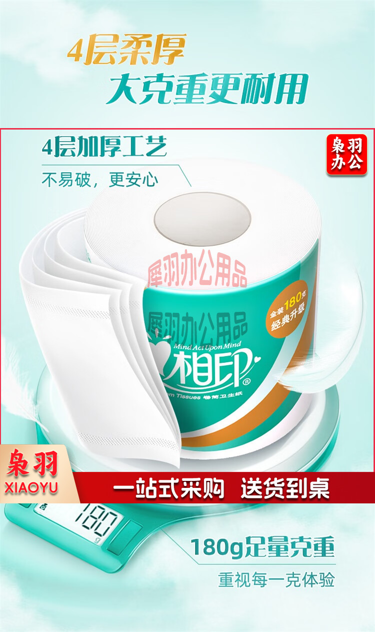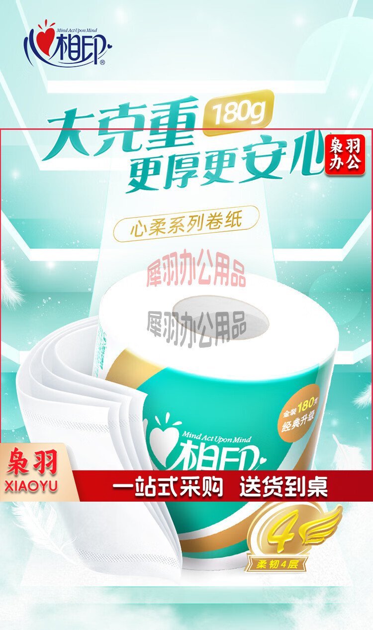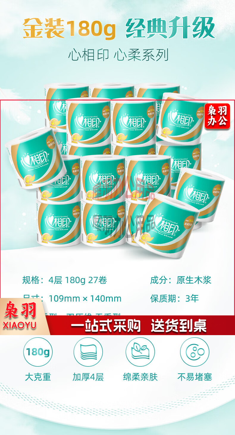 心相印卷纸卫生纸有芯卷筒纸粗卷心柔系列4层加厚纸巾家庭装整箱 4层/180g/10卷 原生木浆