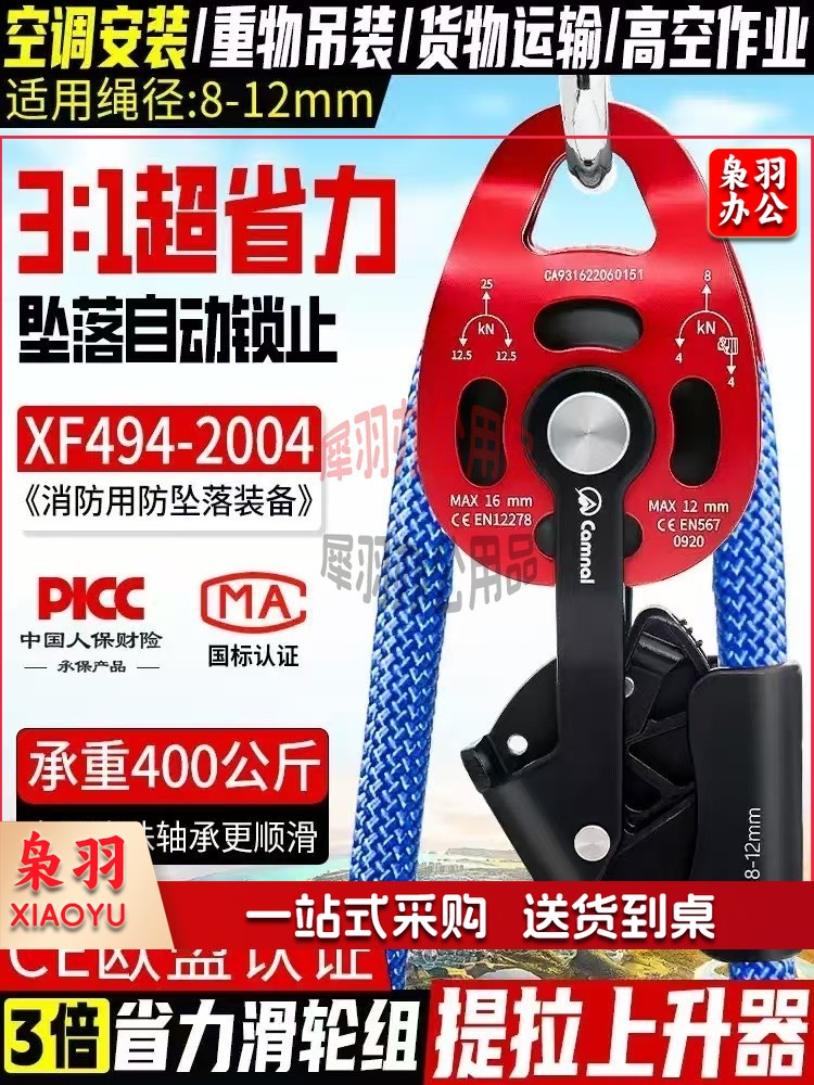 空调安装/消防逃生/重物吊装/高空作业滑轮提拉上升器(含30米绳子)
