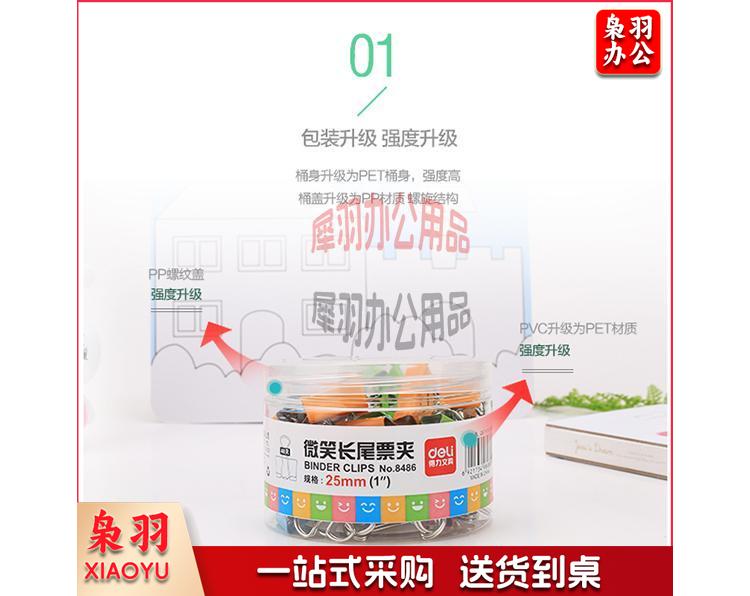 得力(deli)48只25mm微笑系列金属长尾票夹票据夹燕尾夹 中号文件夹子 办公用品 8486
