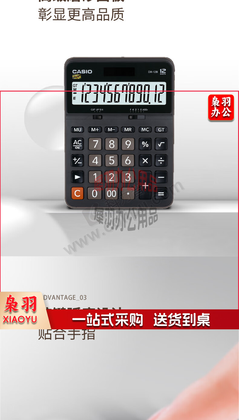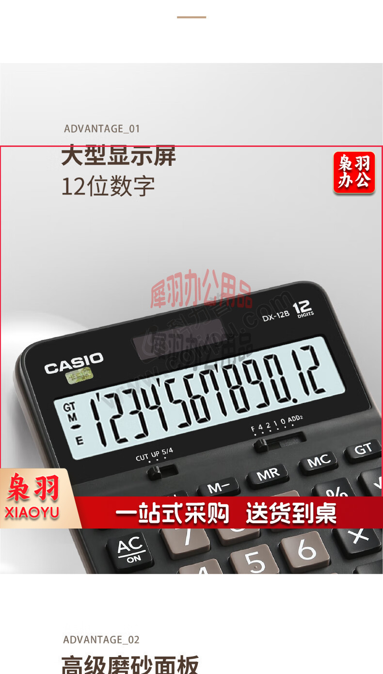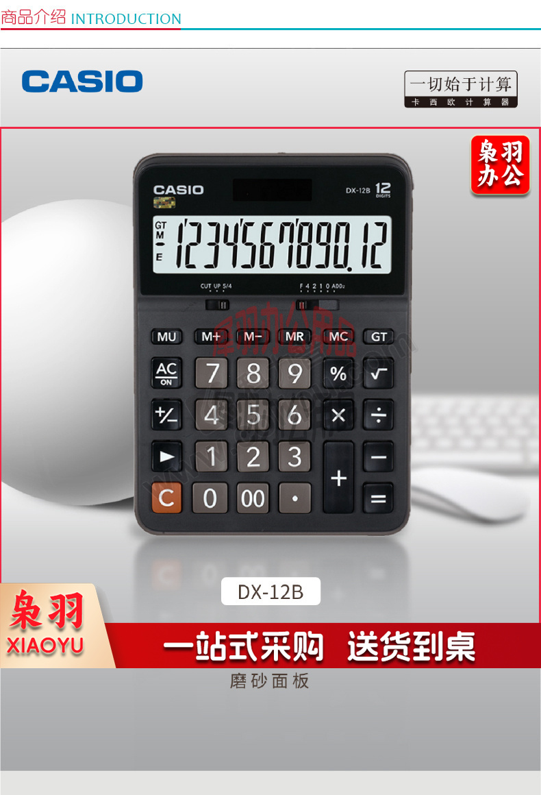 卡西欧 CASIO 12位数字显示办公普通计算器 DX-12B 中号 10个/盒 (新老包装更替)DC