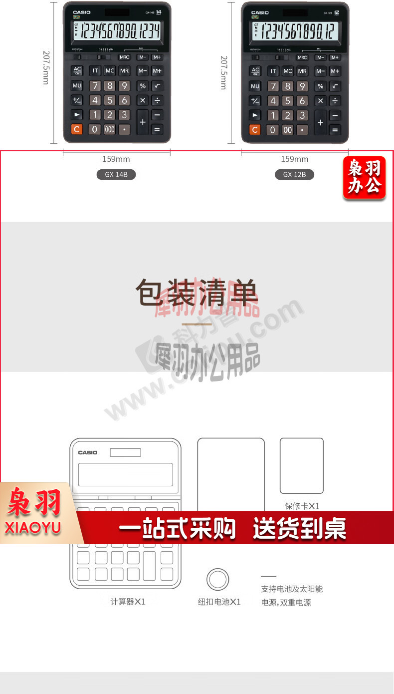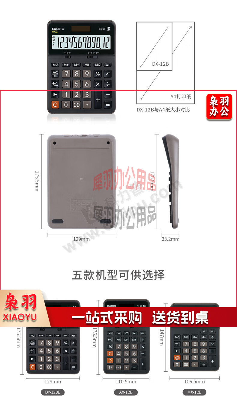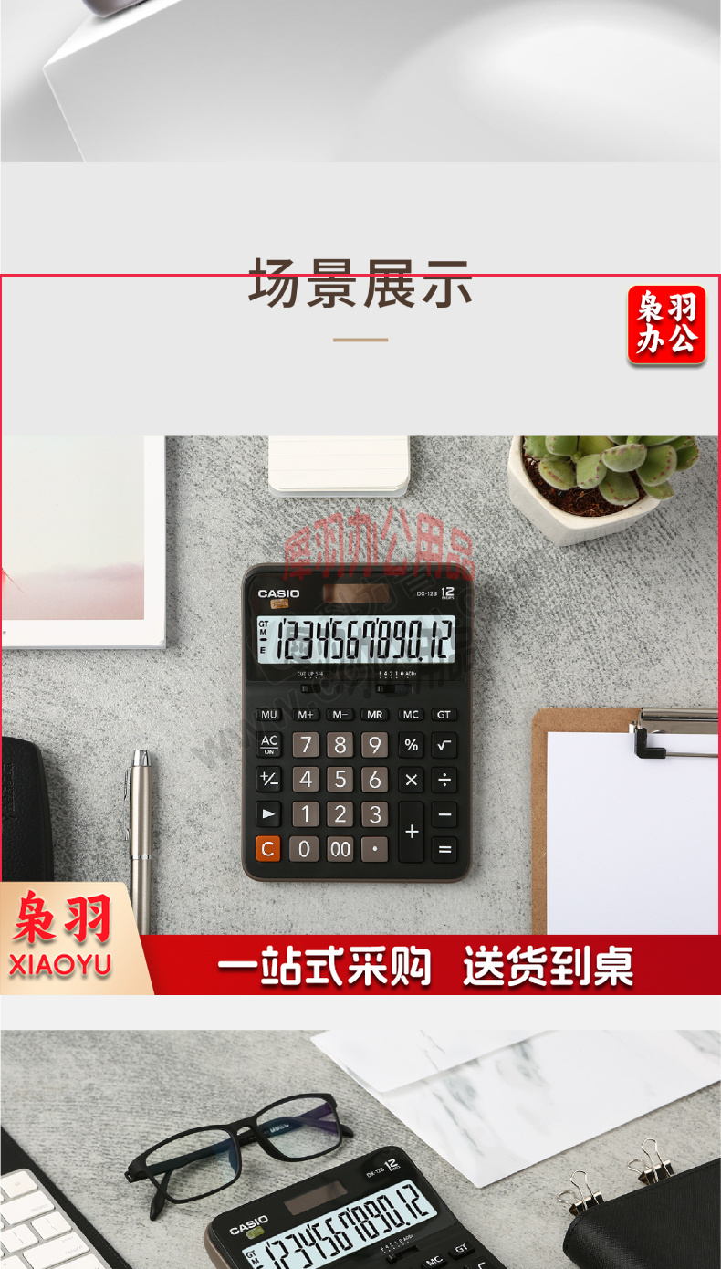 卡西欧 CASIO 12位数字显示办公普通计算器 DX-12B 中号 10个/盒 (新老包装更替)DC