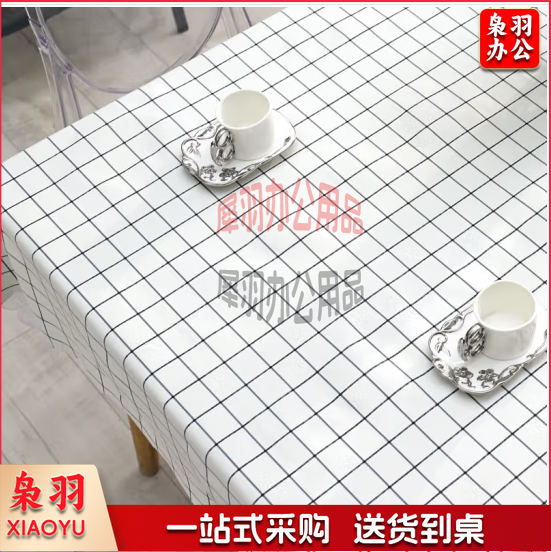 方格餐桌布防水防烫防油免洗PVC桌布套布居家日用茶几桌布120*60 白色格子