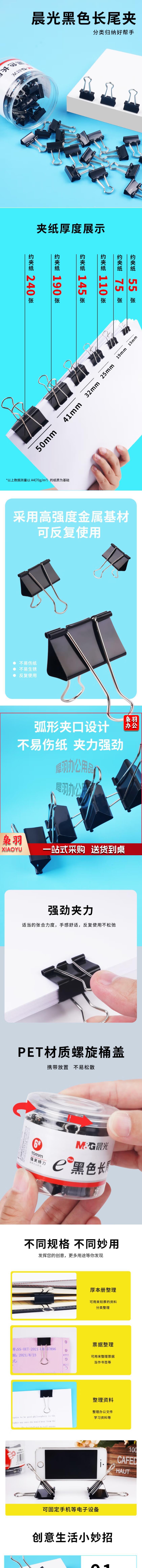 晨光 黑色长尾夹15mm 60枚/桶 ABS92737