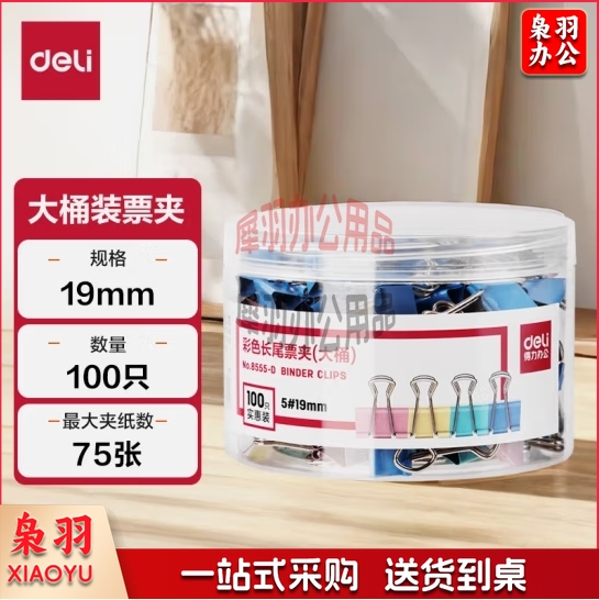 得力(deli)100只19mm省力彩色长尾夹票夹 5#金属燕尾夹票据夹子8555-D