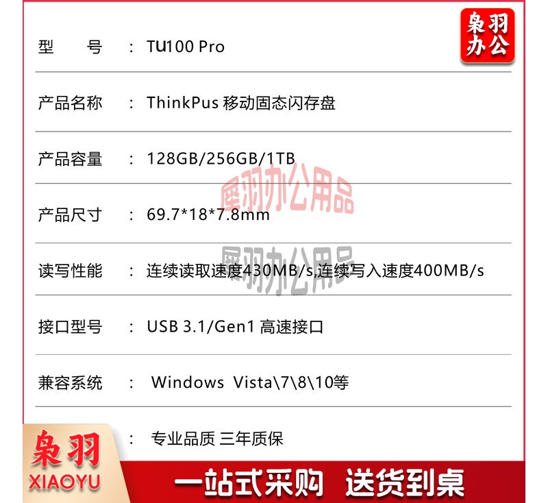 联想 移动固态闪存优盘 USB3.1高速传输U盘 金属商务U盘 大容量电脑优盘 TU100 Pro 【128G】