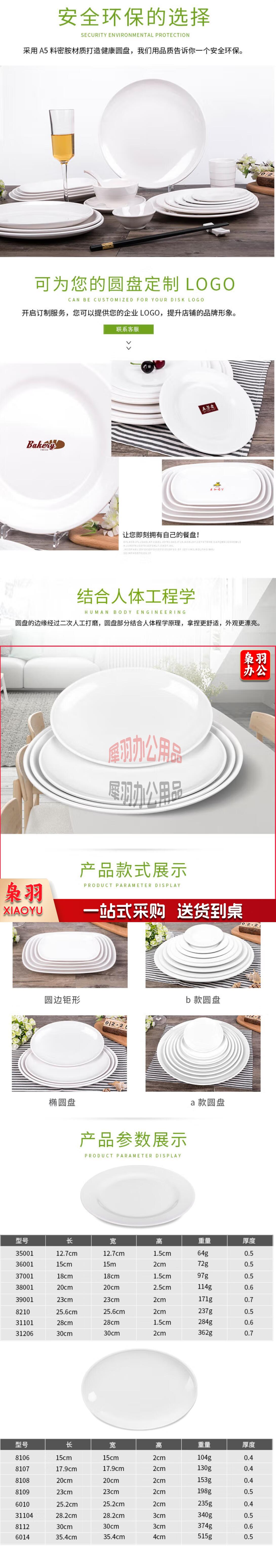 密胺盘圆形冷菜碟快餐凉菜塑料盘子9寸23cm(手工测量)