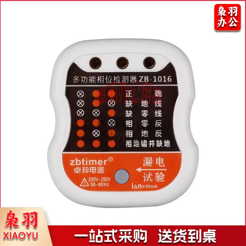 验房工具三极电源插头电插座漏电相位检测仪漏电保护器检查火零线验电器插座安全验电仪10A/16A转换式通用插座相位仪验电器