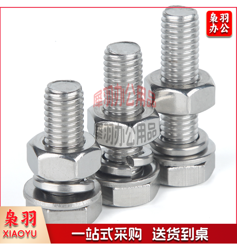 304不锈钢外六角螺丝螺栓螺母平垫弹垫套装M16*65mm