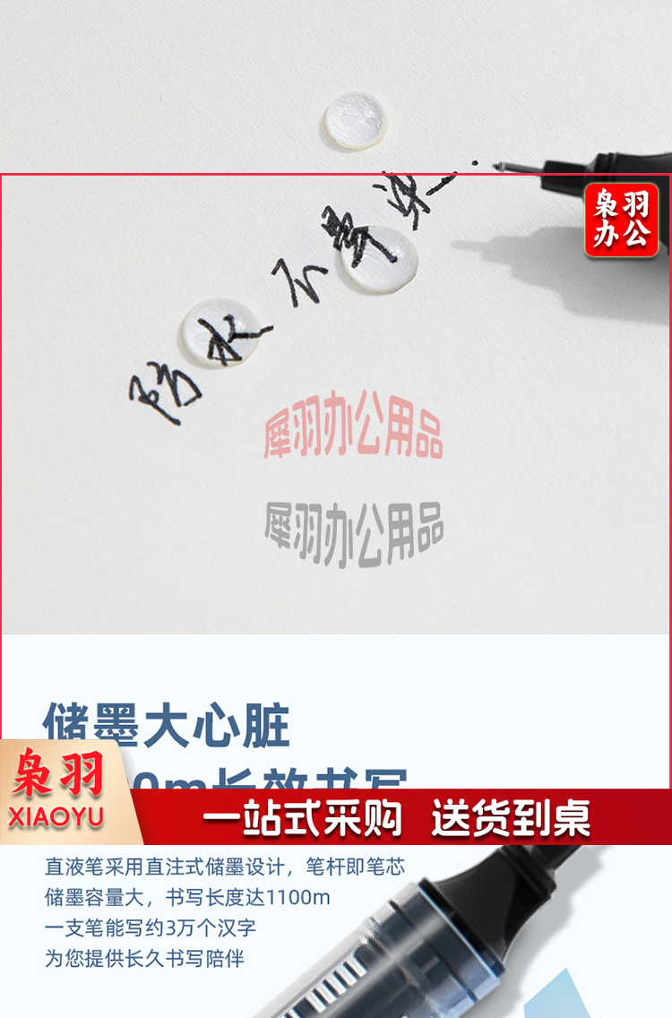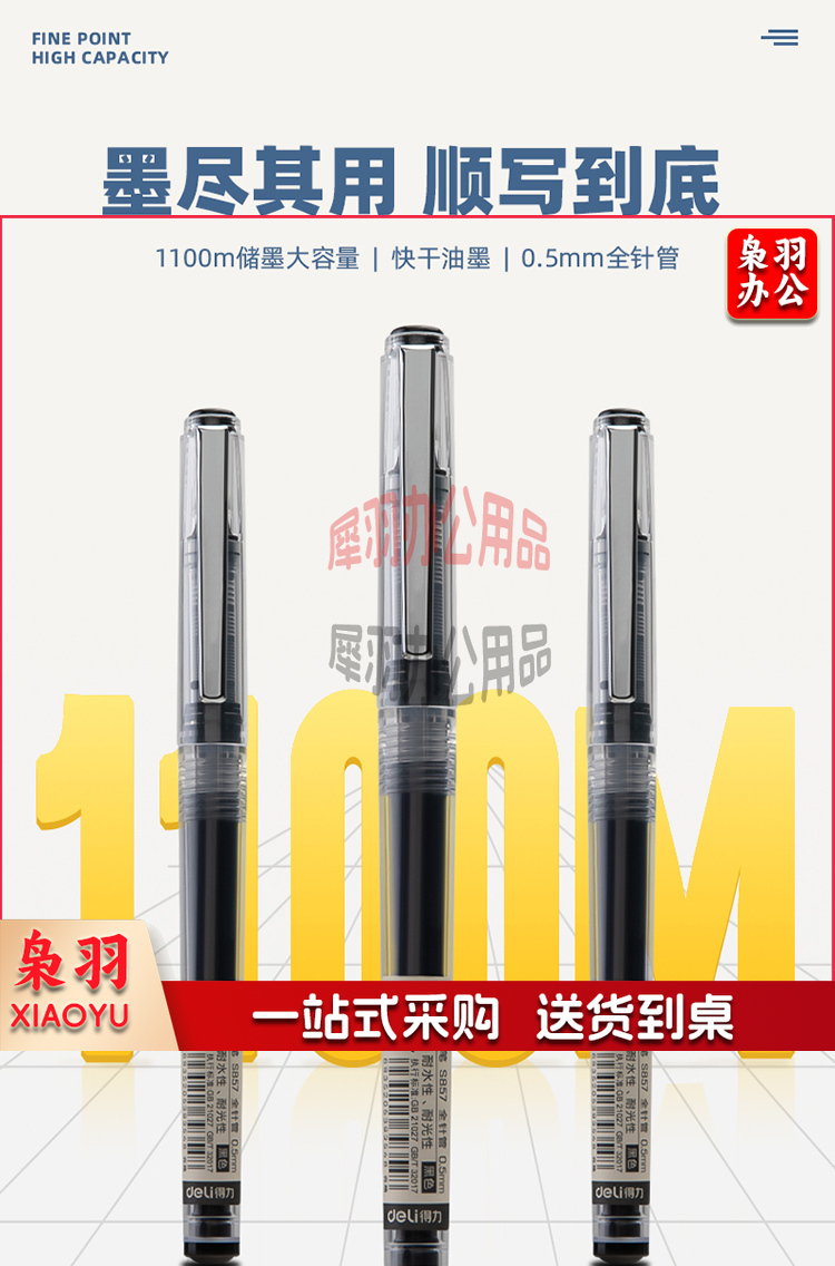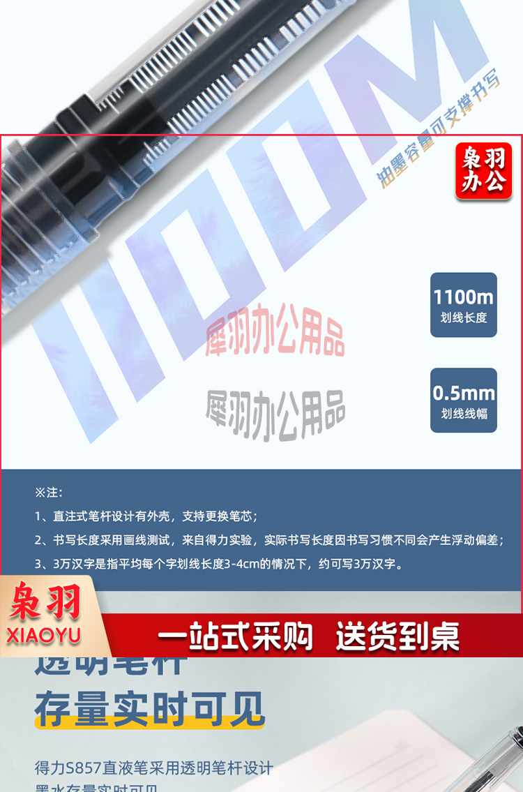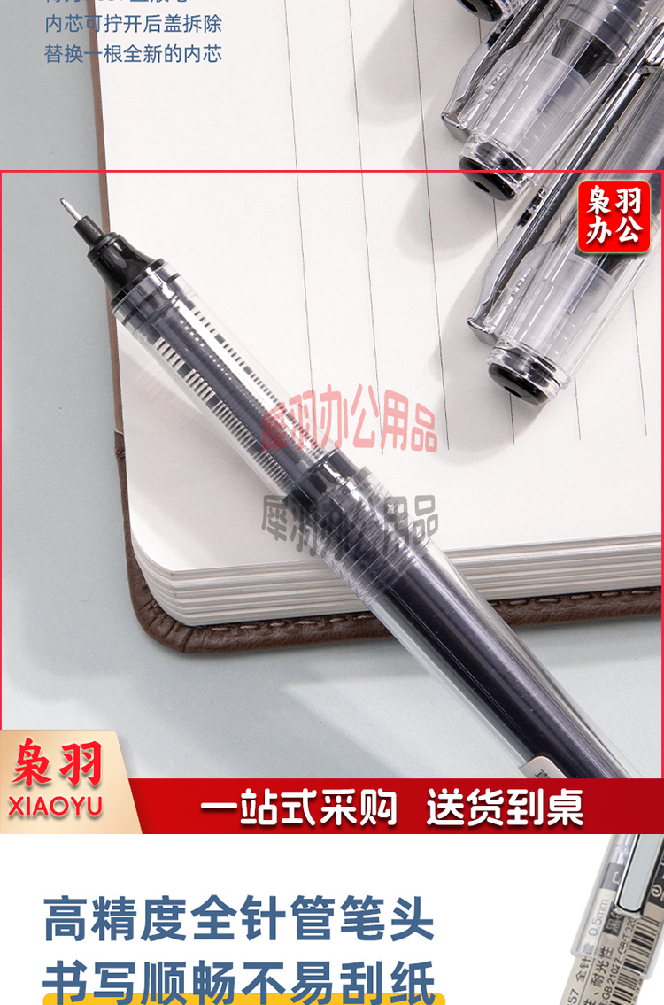 得力(deli)全针管可换芯直液笔走珠中性笔 办公学生签字笔水笔会议笔 0.5mm12支/盒S857