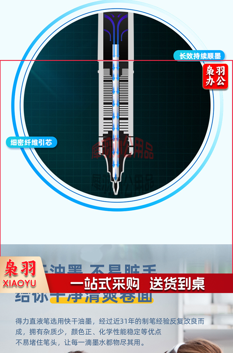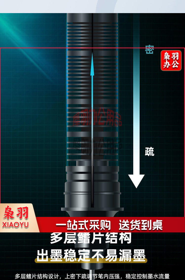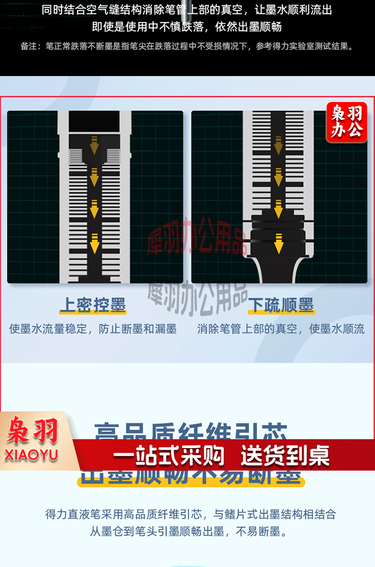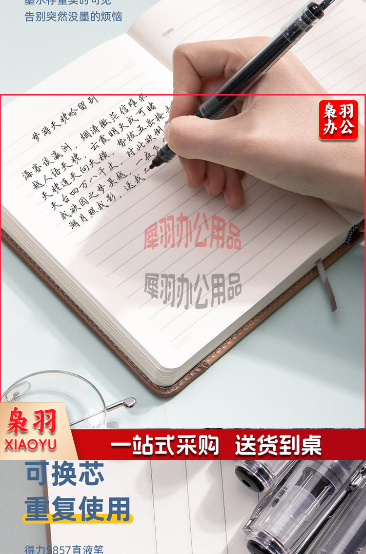 得力(deli)全针管可换芯直液笔走珠中性笔 办公学生签字笔水笔会议笔 0.5mm12支/盒S857