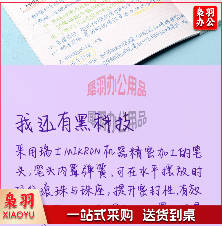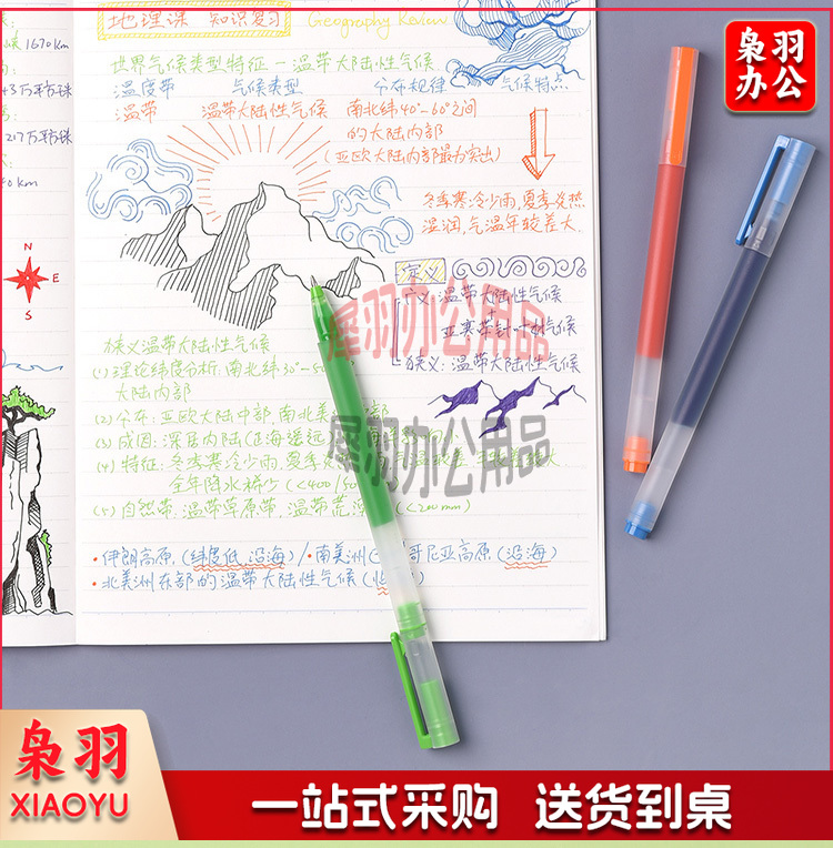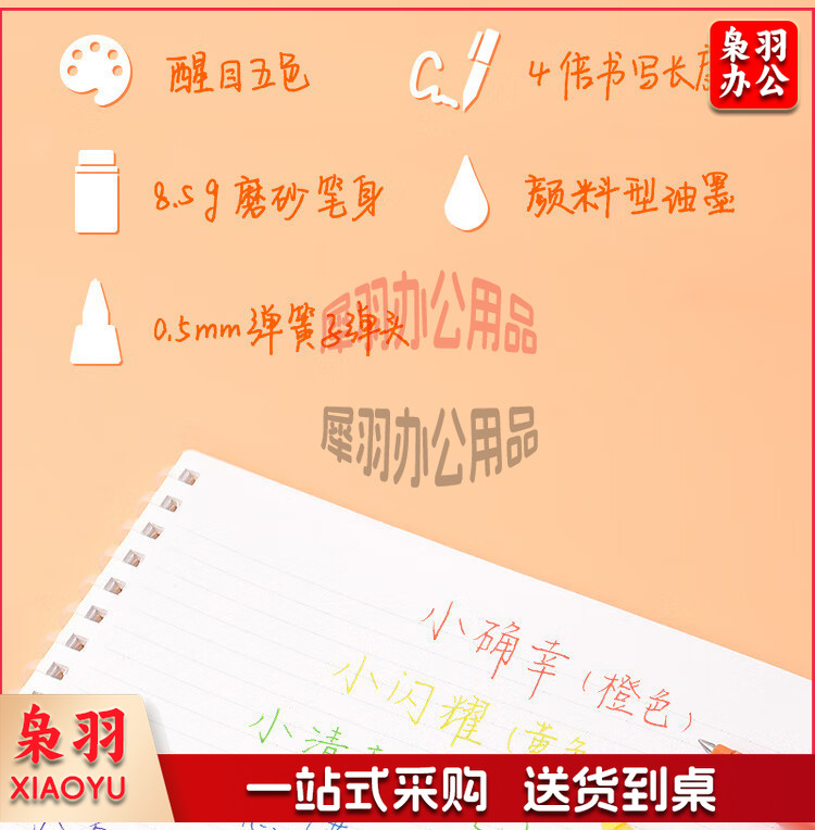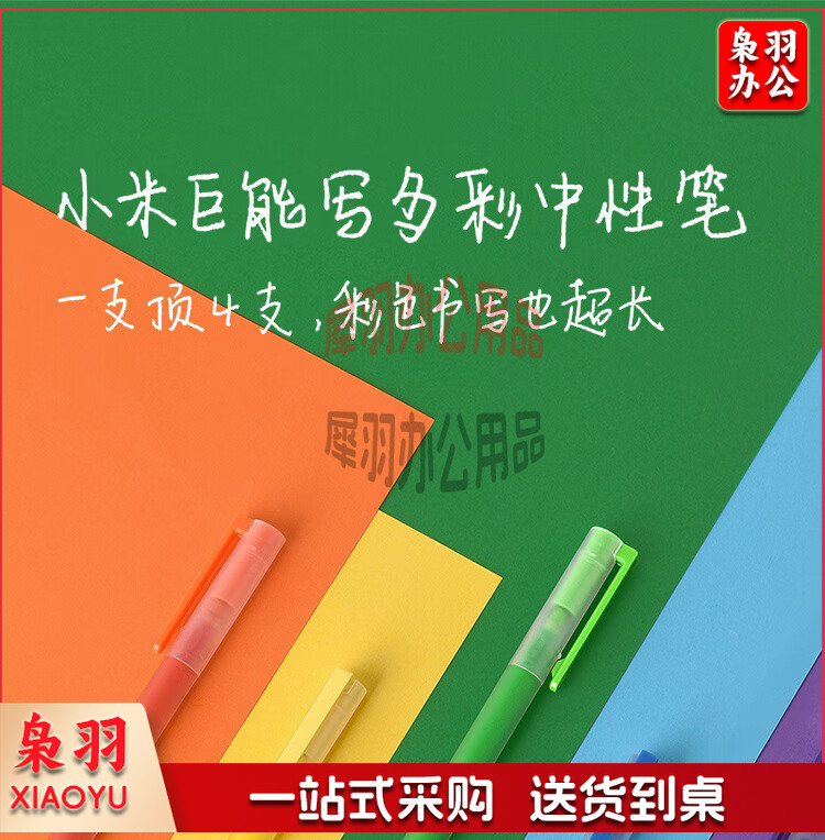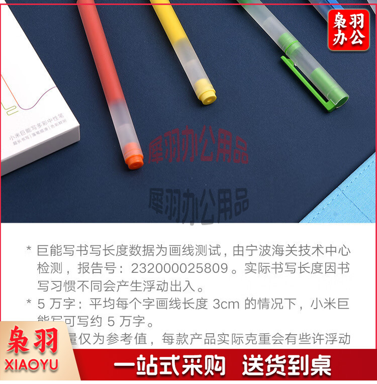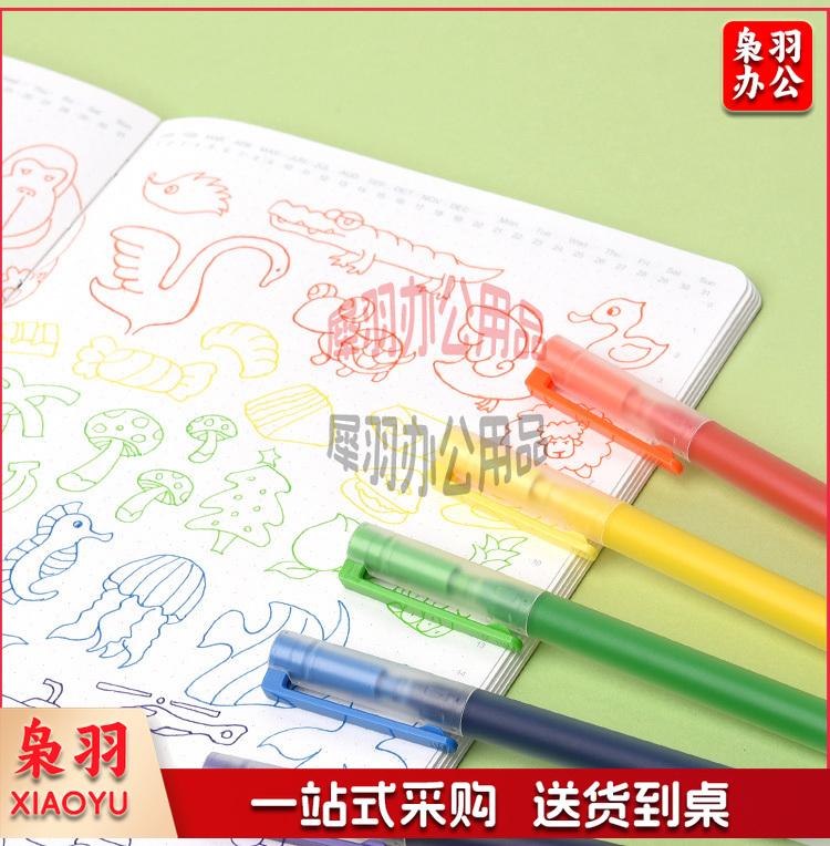 小米巨能写多彩中性笔 5支装 0.5mm 商务办公中性笔会议笔 橙黄绿蓝紫