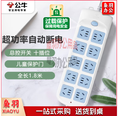 公牛(BULL)超功率保护新国标插座插线板排插接线板 10位总控全长1.8米 GN-605
