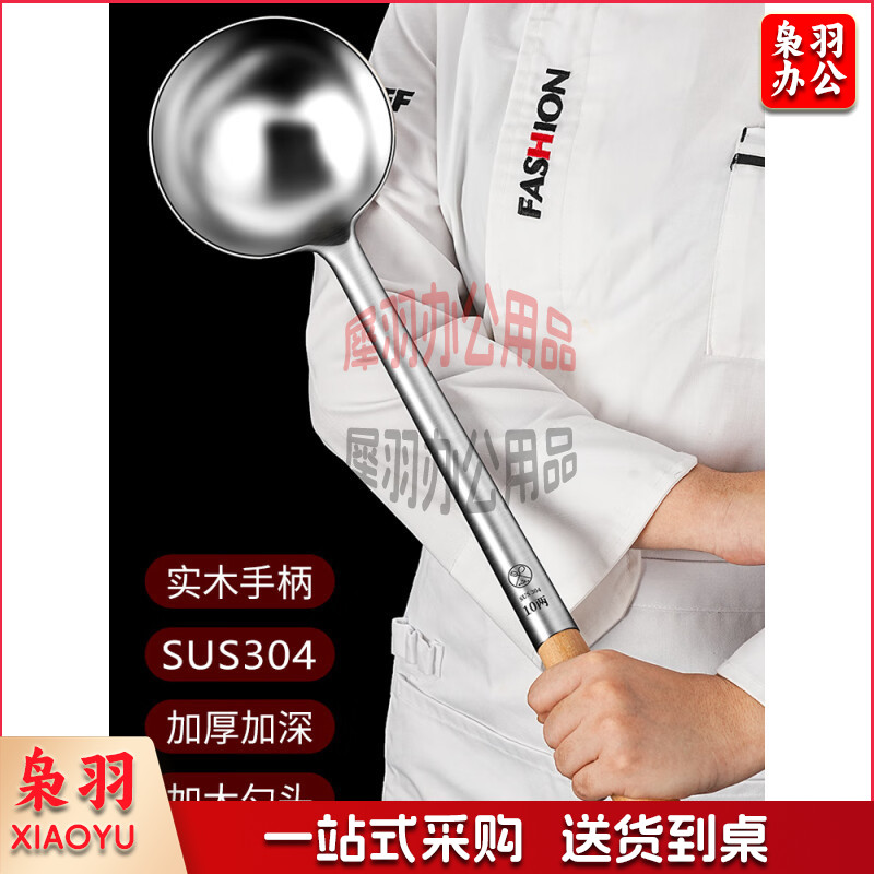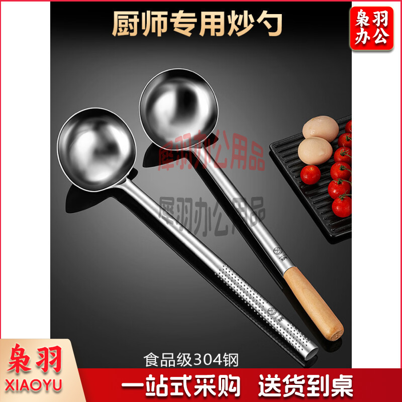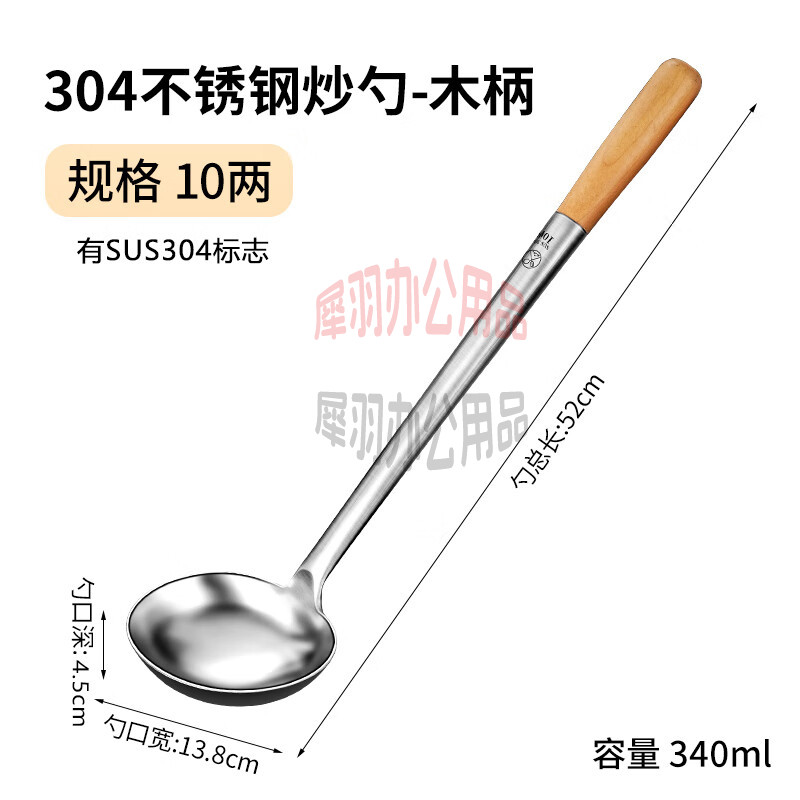 304不锈钢炒勺大号设计家用长柄汤勺商用粥勺和分菜勺 【304特厚款】10两木柄炒勺