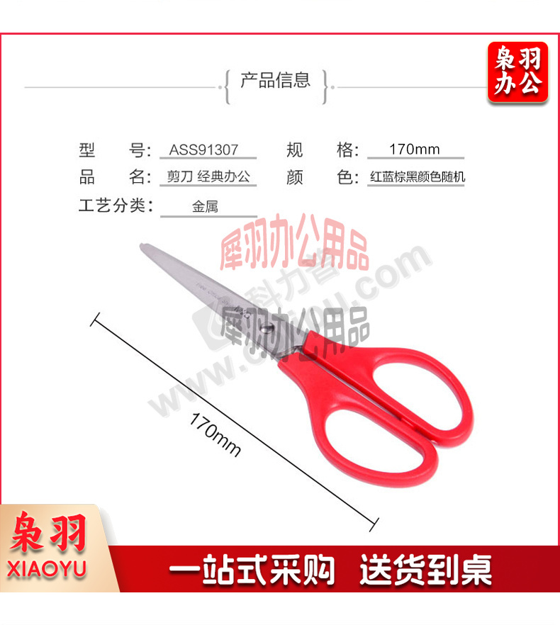 晨光 M&G 经典型办公剪刀 ASS91307 170mm (红色、蓝色、黑色、棕色) 12把/盒 (颜色随机)