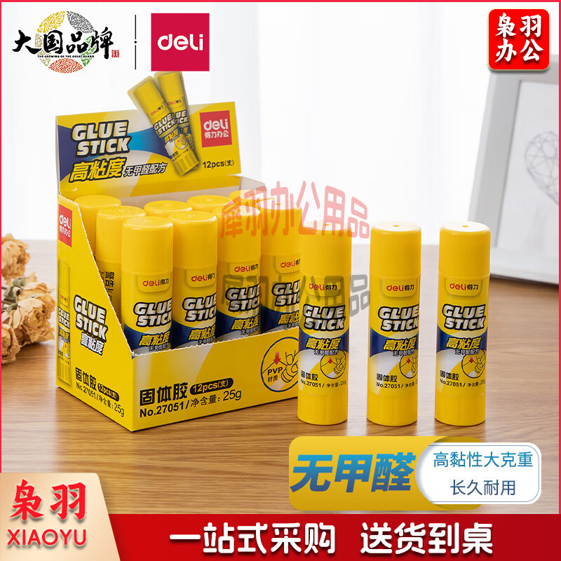 得力(deli)25g高粘性固体胶水 无甲醛快干耐用胶棒 12支装 办公用品 27051