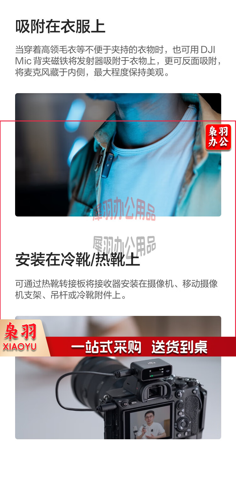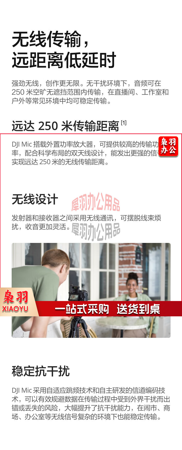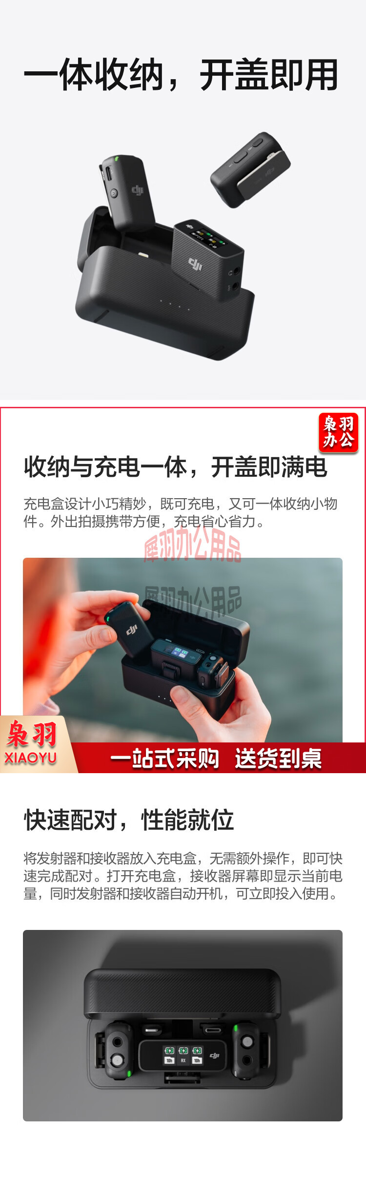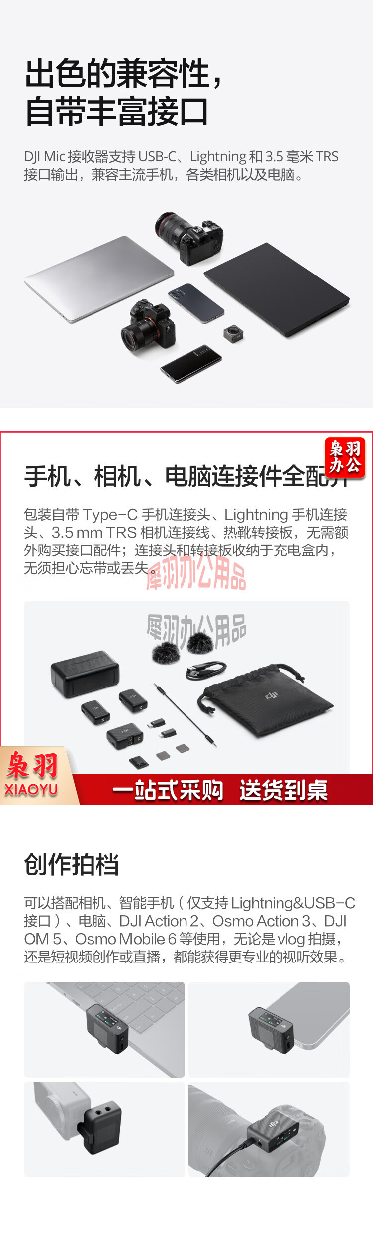 大疆 DJI Mic 无线麦克风 一拖二无线领夹麦克风 手机采访vlog直播录音收音麦
