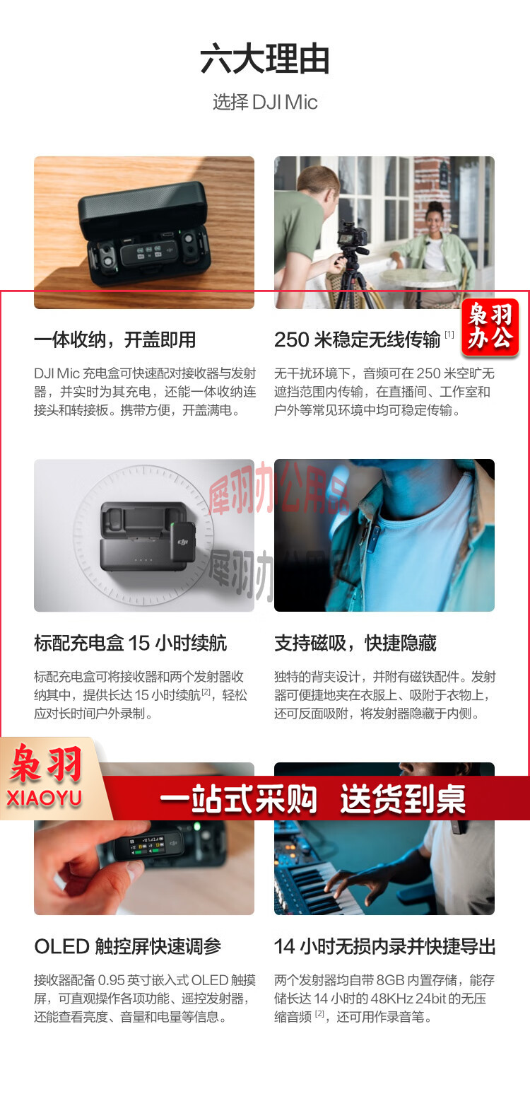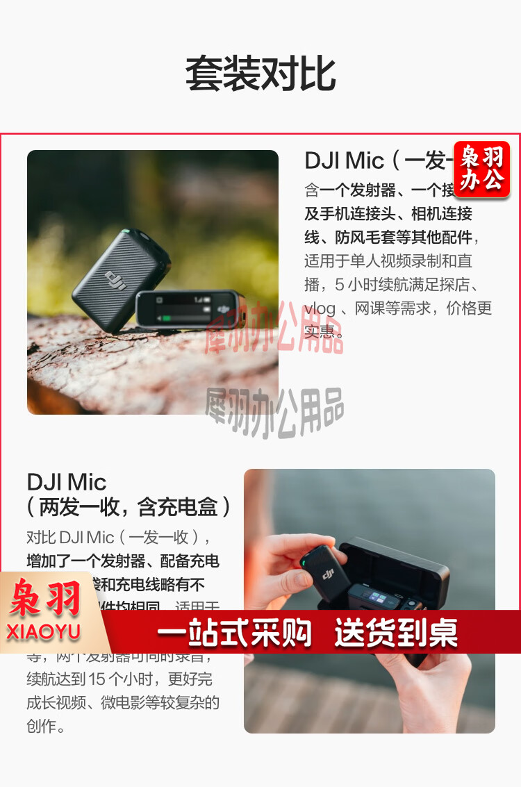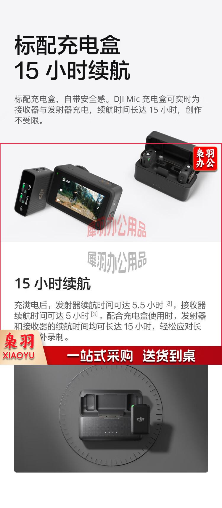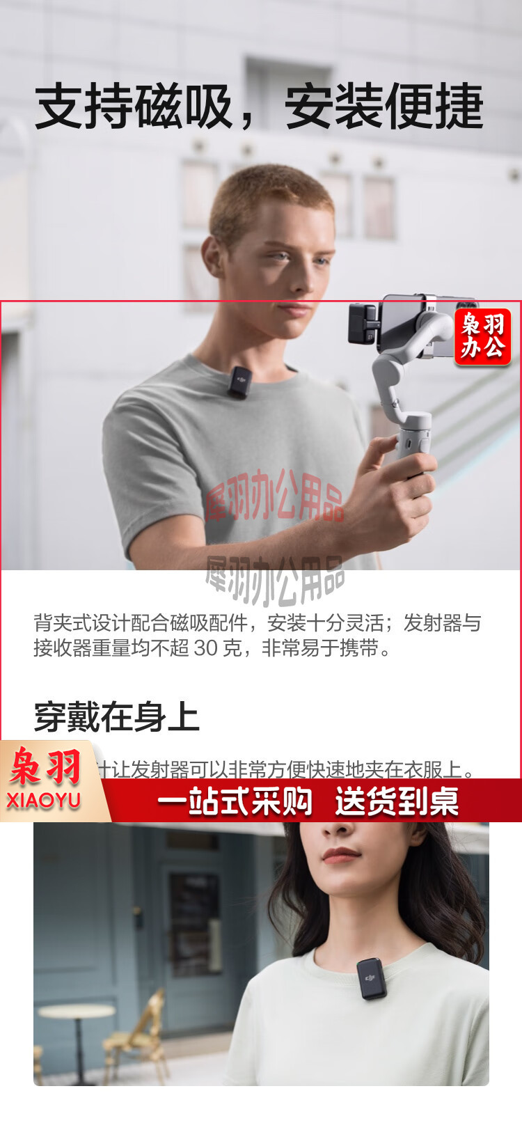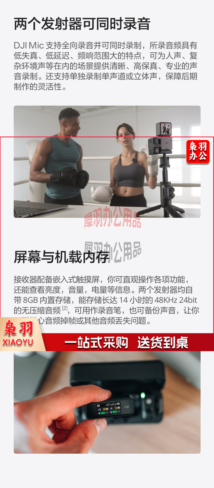 大疆 DJI Mic 无线麦克风 一拖二无线领夹麦克风 手机采访vlog直播录音收音麦