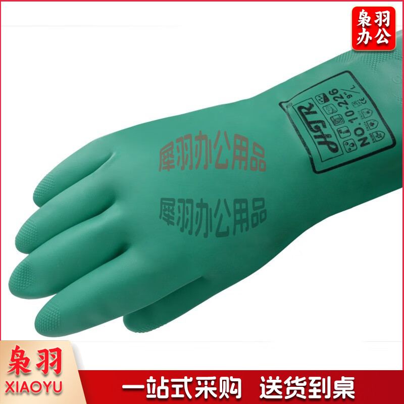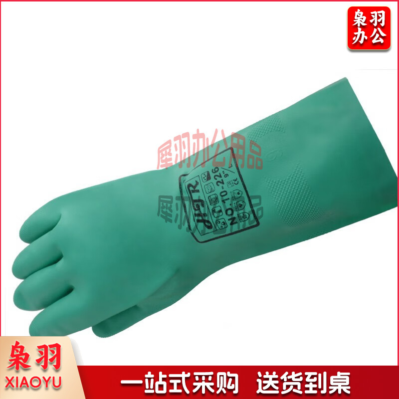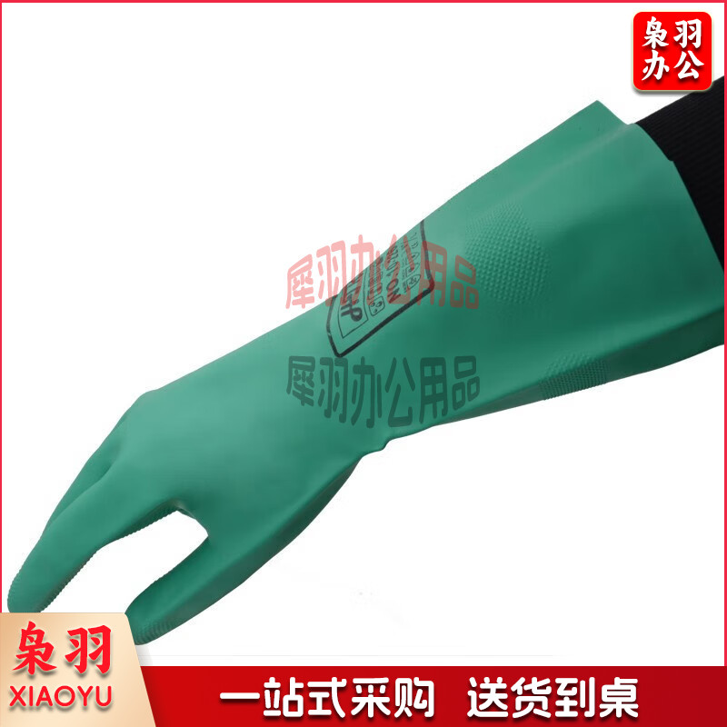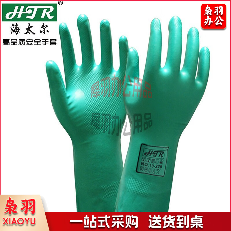 海太尔丁腈防化学品手套 耐磨耐酸碱绒面衬里 33CM手部防护