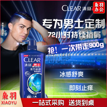 清扬(CLEAR)去屑洗发水活力运动薄荷型蓝瓶900g 冰感舒爽C罗洗发露洗头膏