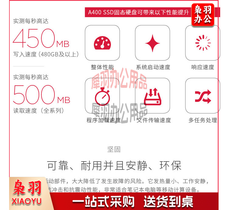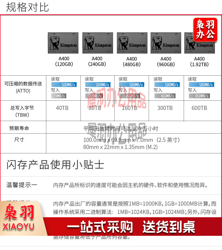 金士顿(Kingston) 960GB SSD固态硬盘 SATA3.0接口 A400系列