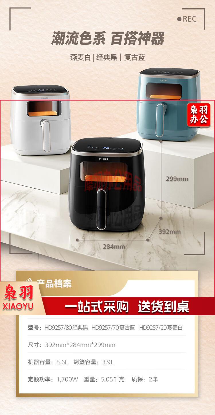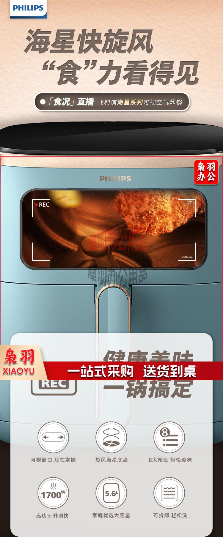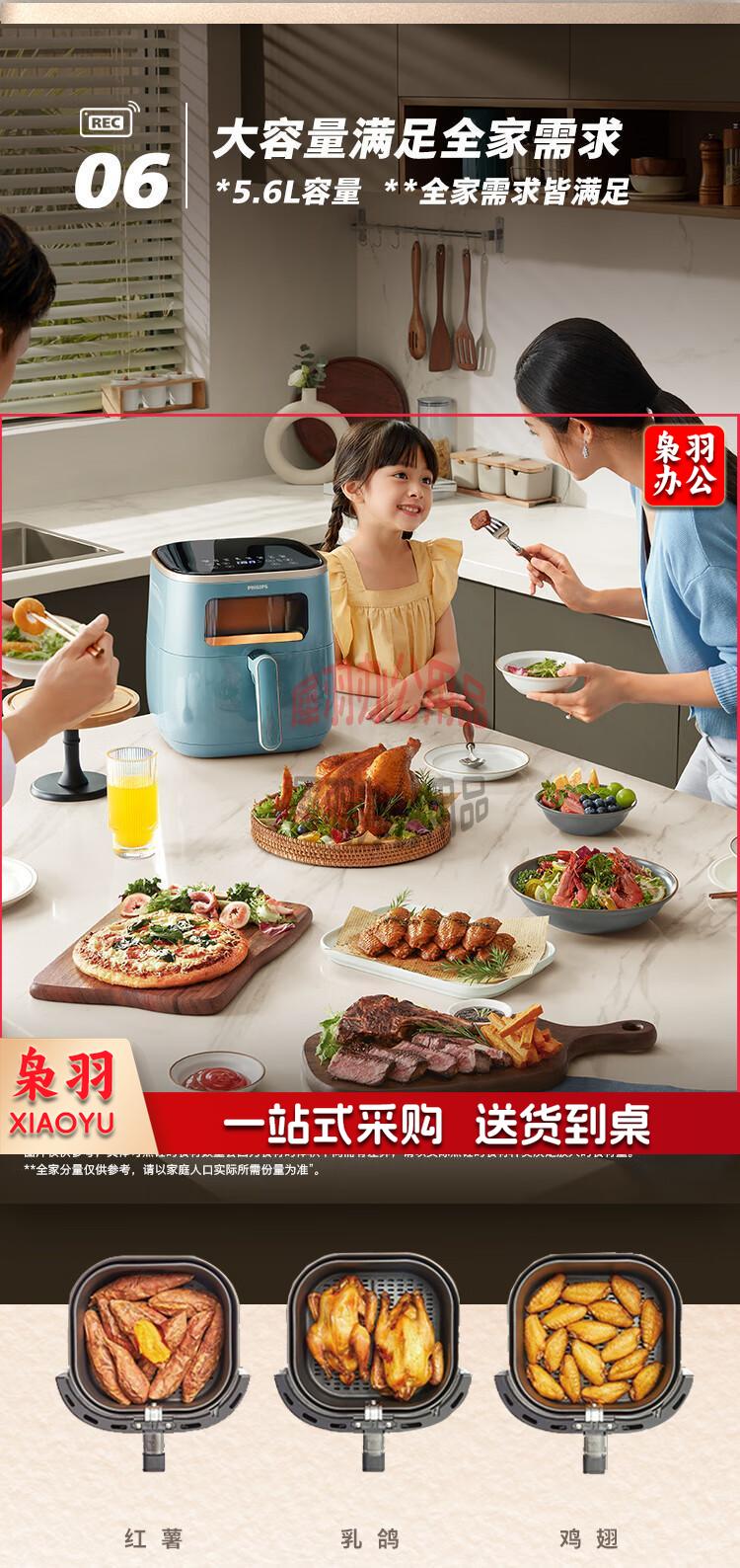 飞利浦(PHILIPS)海星空气炸锅 家用5.6L大容量多功能全自动【透明可视+不用翻面】双层锅体易清洗HD9257