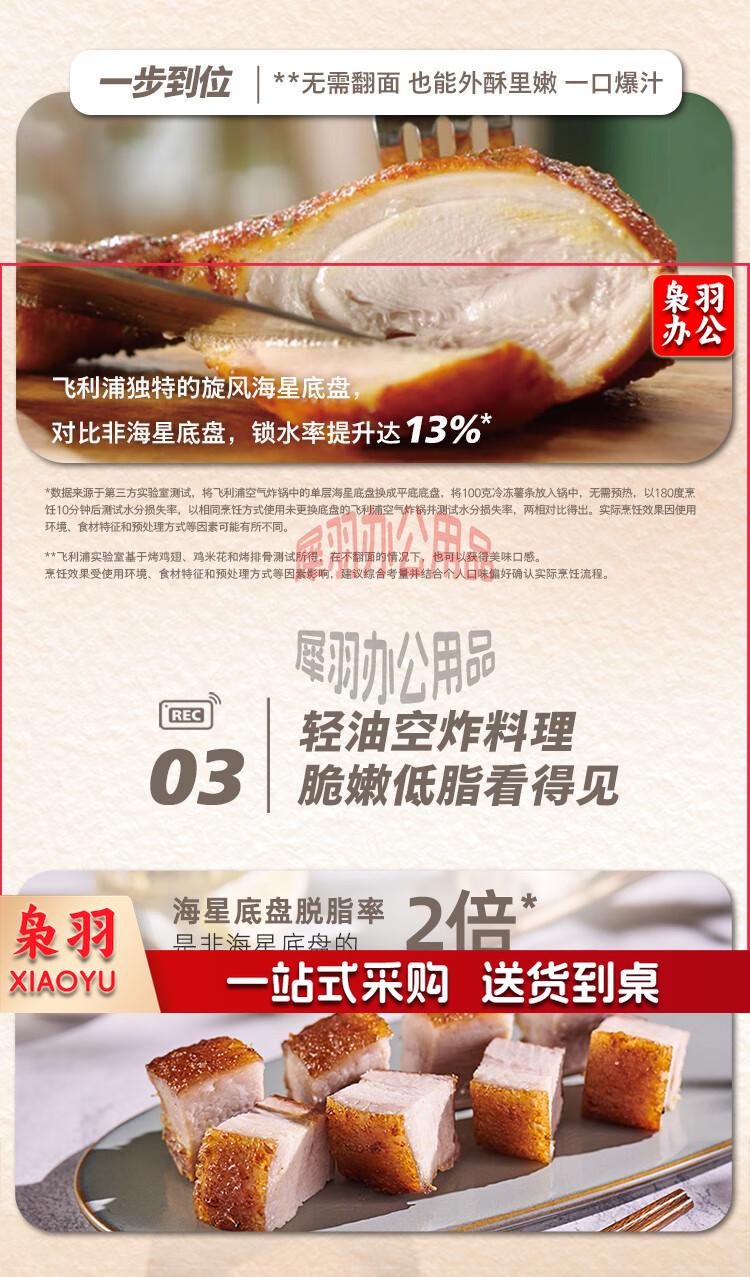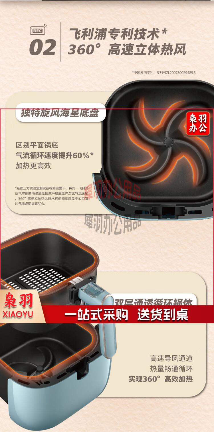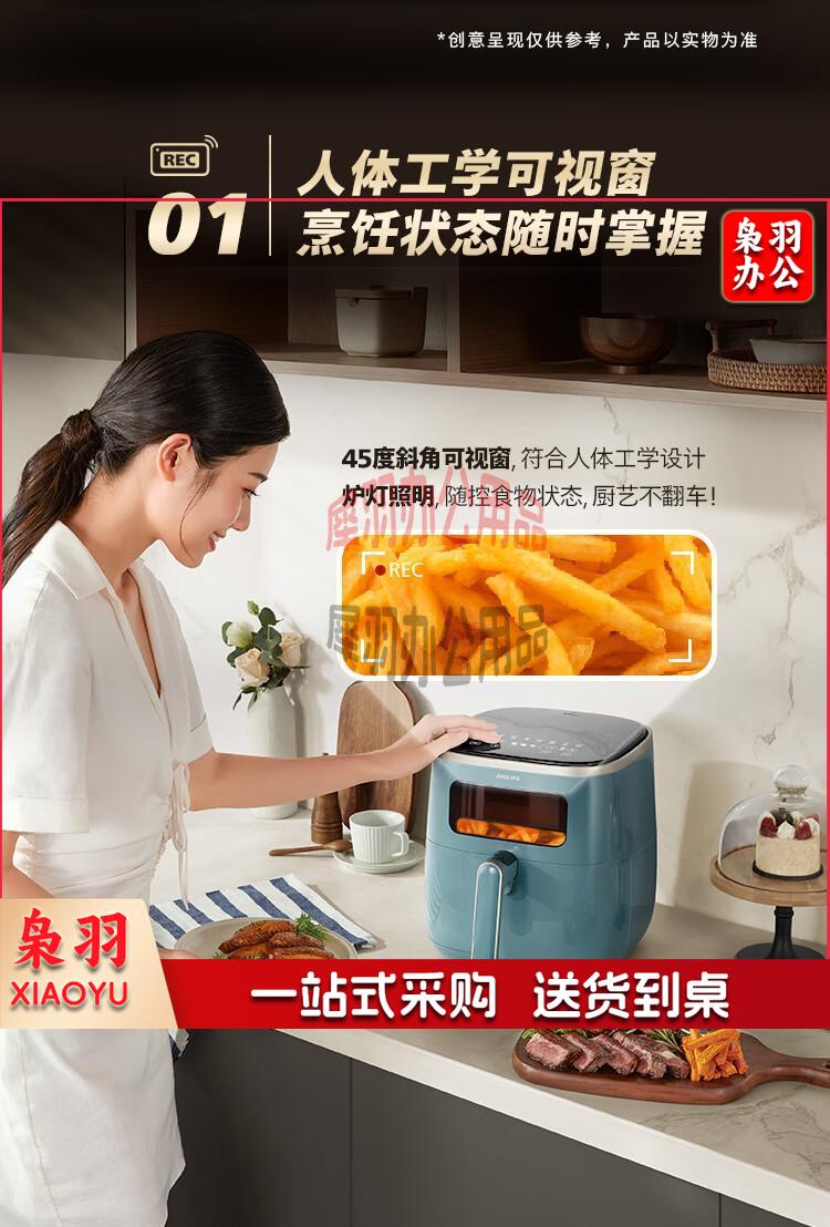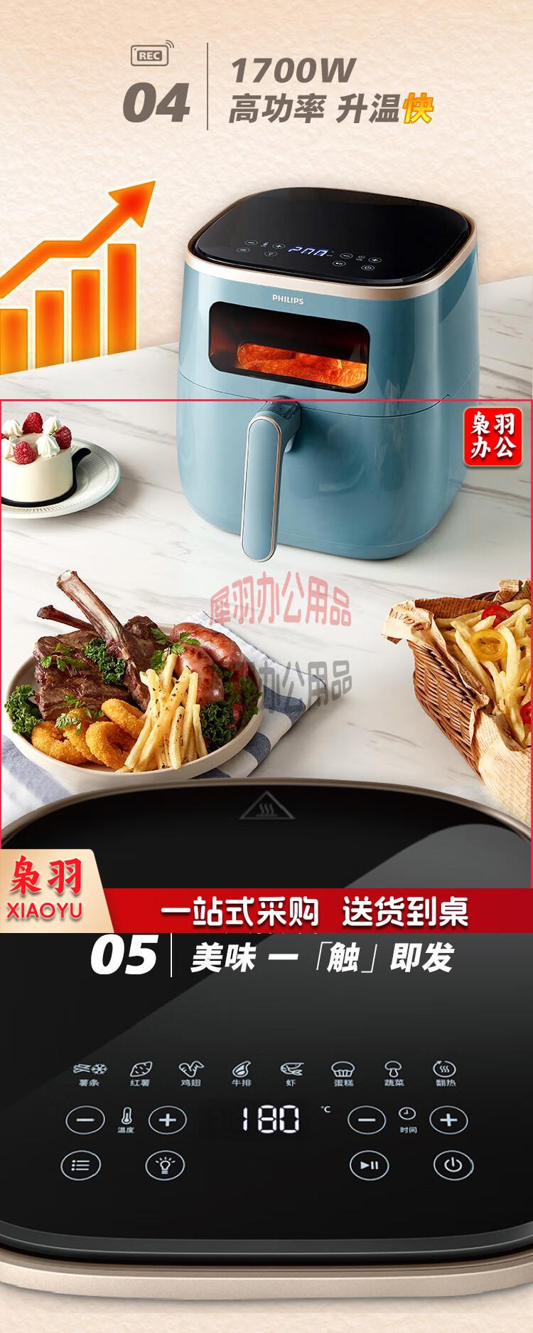 飞利浦(PHILIPS)海星空气炸锅 家用5.6L大容量多功能全自动【透明可视+不用翻面】双层锅体易清洗HD9257