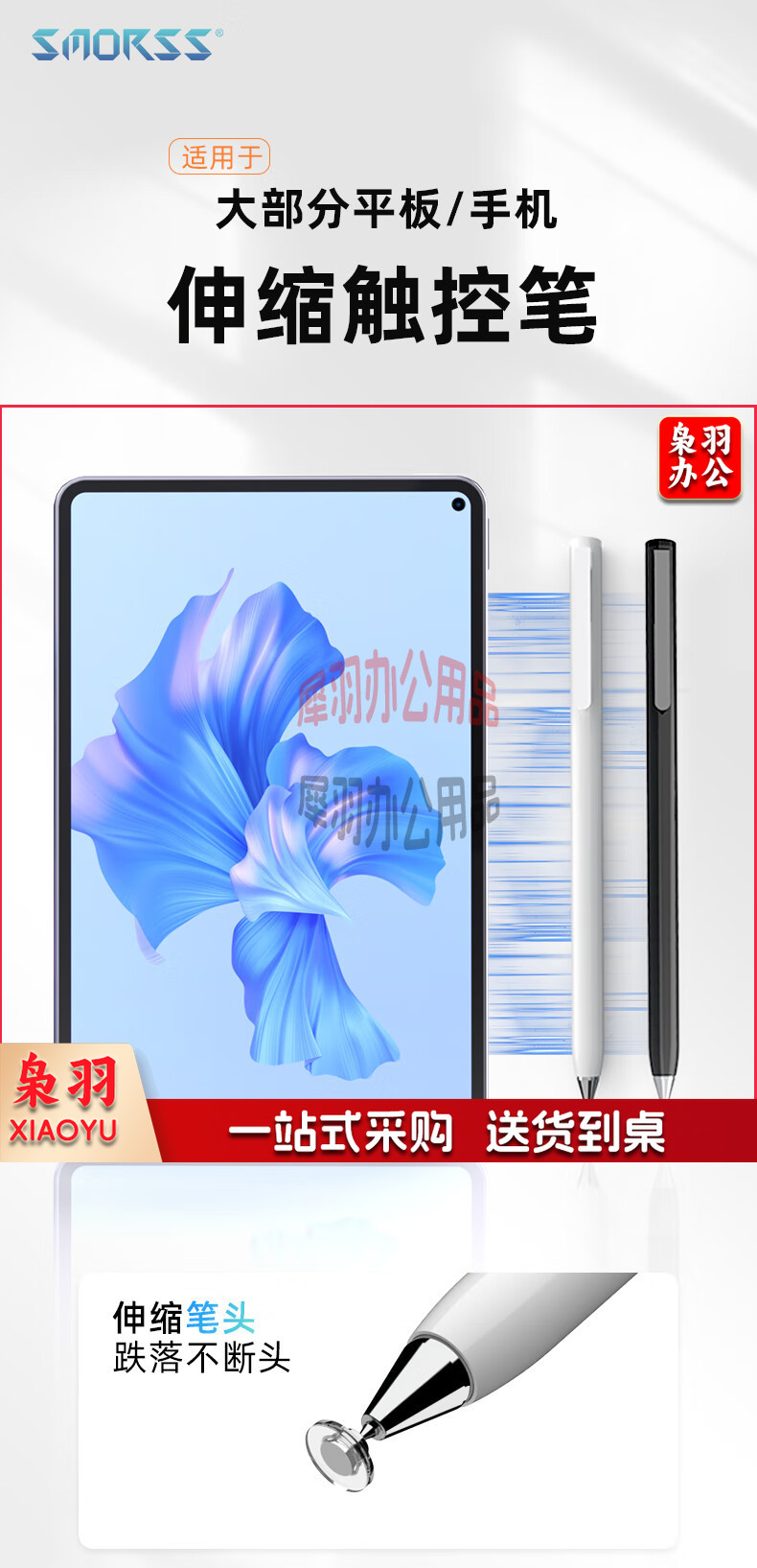Smorss电容笔 触控笔 手写笔 可吸附iPad-升级金属笔芯 白色