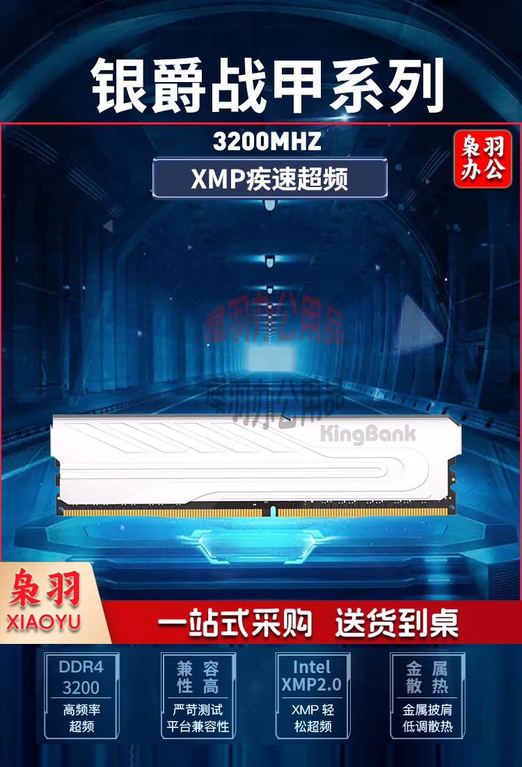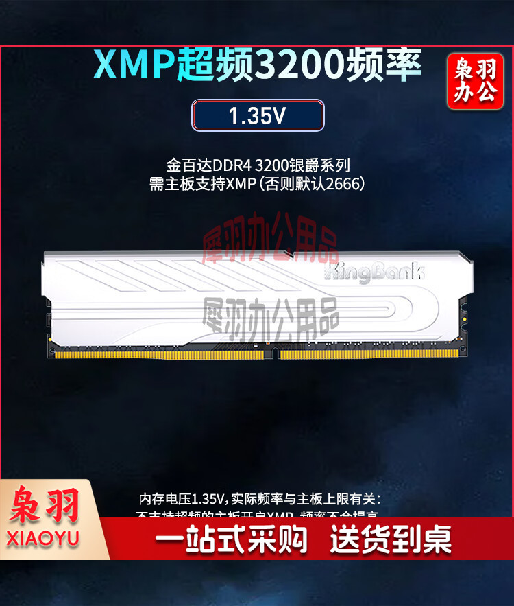 金百达(KINGBANK)16GB DDR4 3200 台式机内存条银爵系列 C16