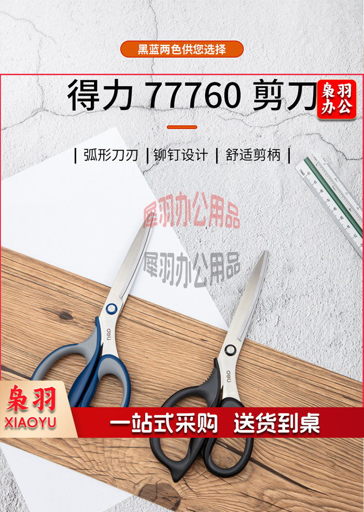 得力(deli)210mm大号弧形剪片省力剪刀 黑色77760