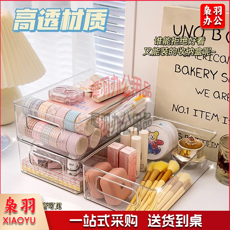 桌面收纳盒亚克力 带提手小号15.5*15*7.5cm (2.9L)